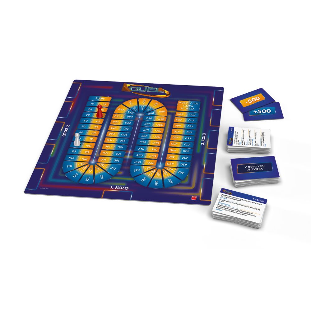 Zábavná kvízová hra, která vychází z úspěšné slovenské televizní soutěže DUEL. Otestujte své vědomosti ve třech soutěžních kolech. Hra pro 2 a více hráčů. Věk 12+