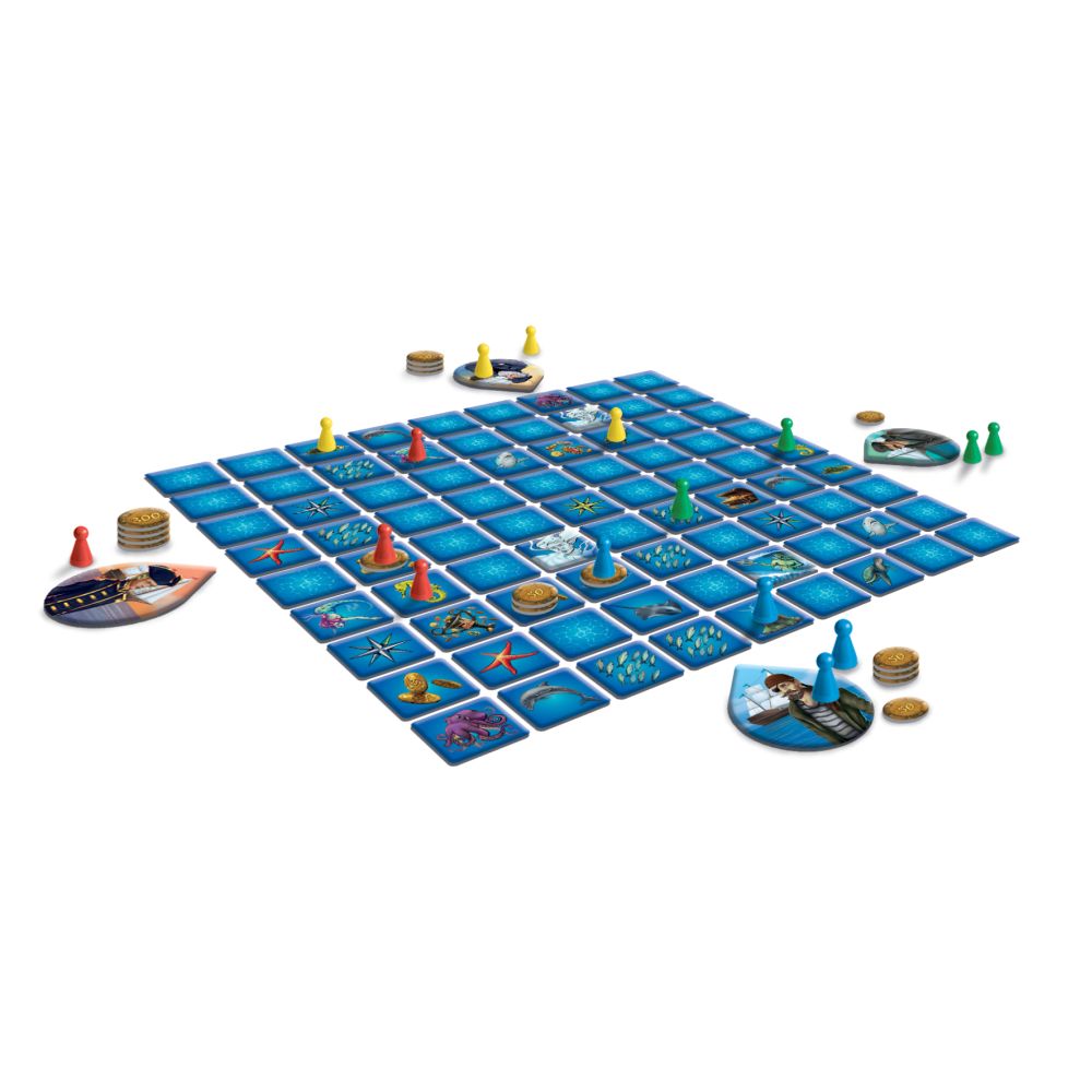 V této hře se stáváte jedním ze 4 kapitánů, kteří soupeří o nalezení co největšího pokladu. K dispozici má každý pouze svou loď a 4 odvážné námořníky.