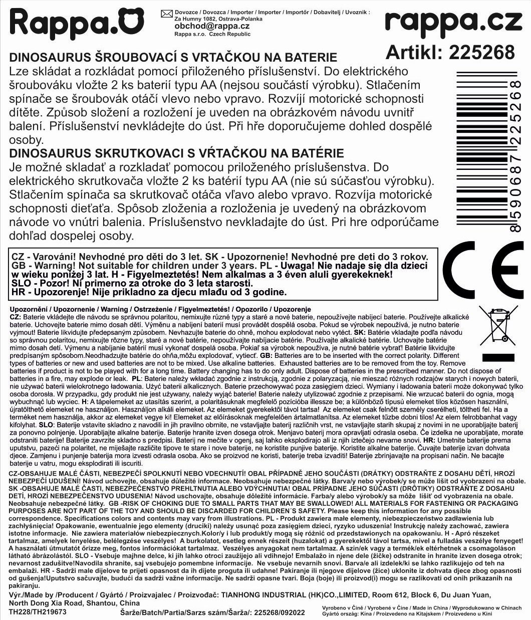 Rappa Dinosaurus šroubovací s aku šroubovákem