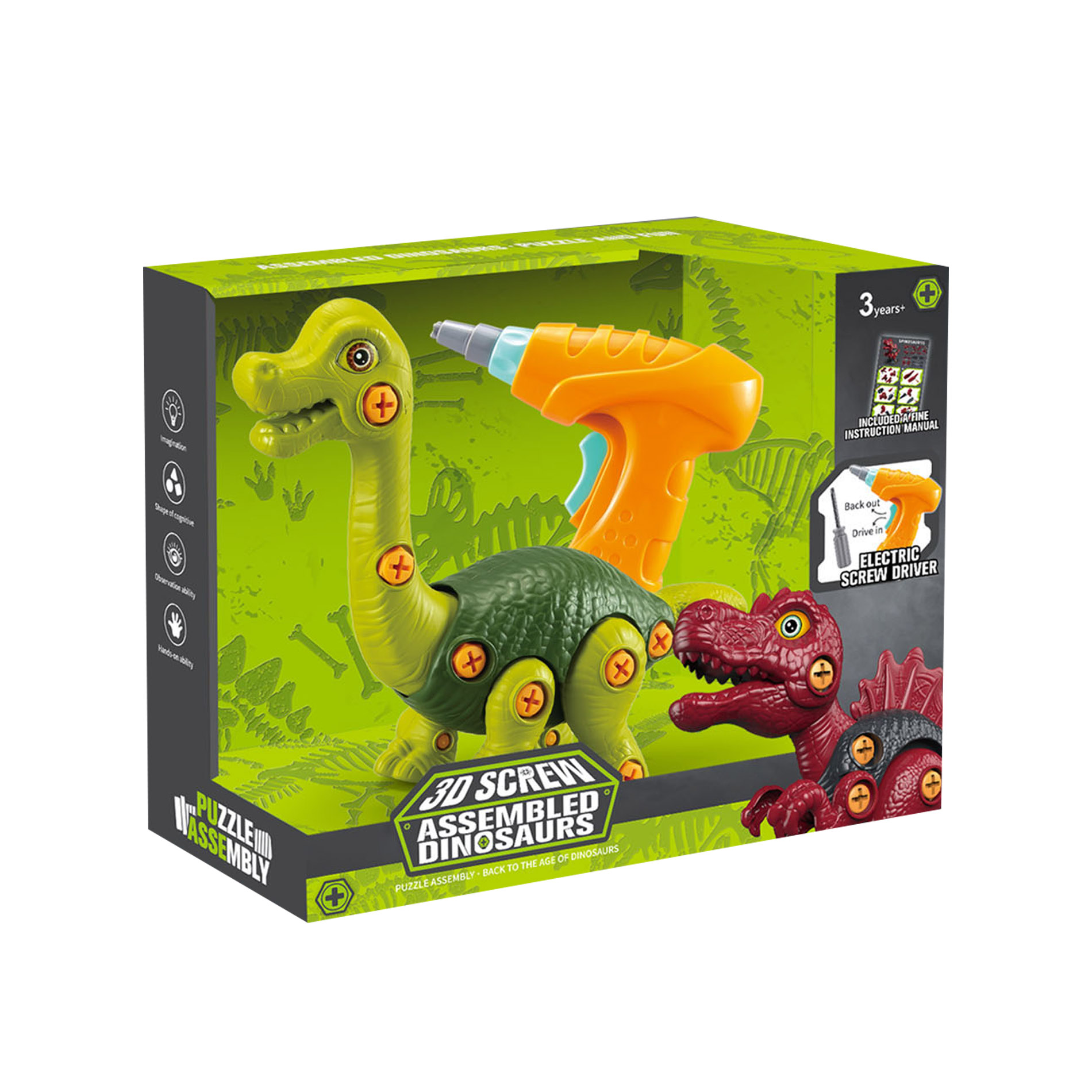 Šroubovací dinosaurus se šroubovákem na baterie. Děti si mohou hravou formou za pomocí přiloženého šroubováku sestavit a opět rozložit svého zeleného dinosaura. Šroubovák funguje na 2 x 1,5V AA baterie, které nejsou součástí balení. Rozvíjí kreativitu a manuální zručnost.