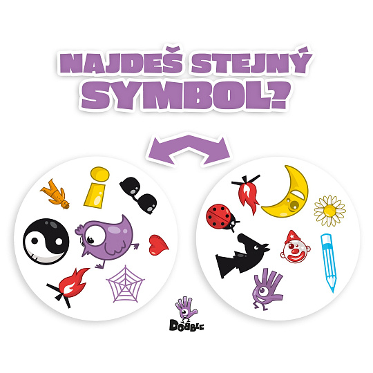 Dobble, to je 55 karet, 8 symbolů na kartě a každé dvě karty spolu mají společný pouze jeden!