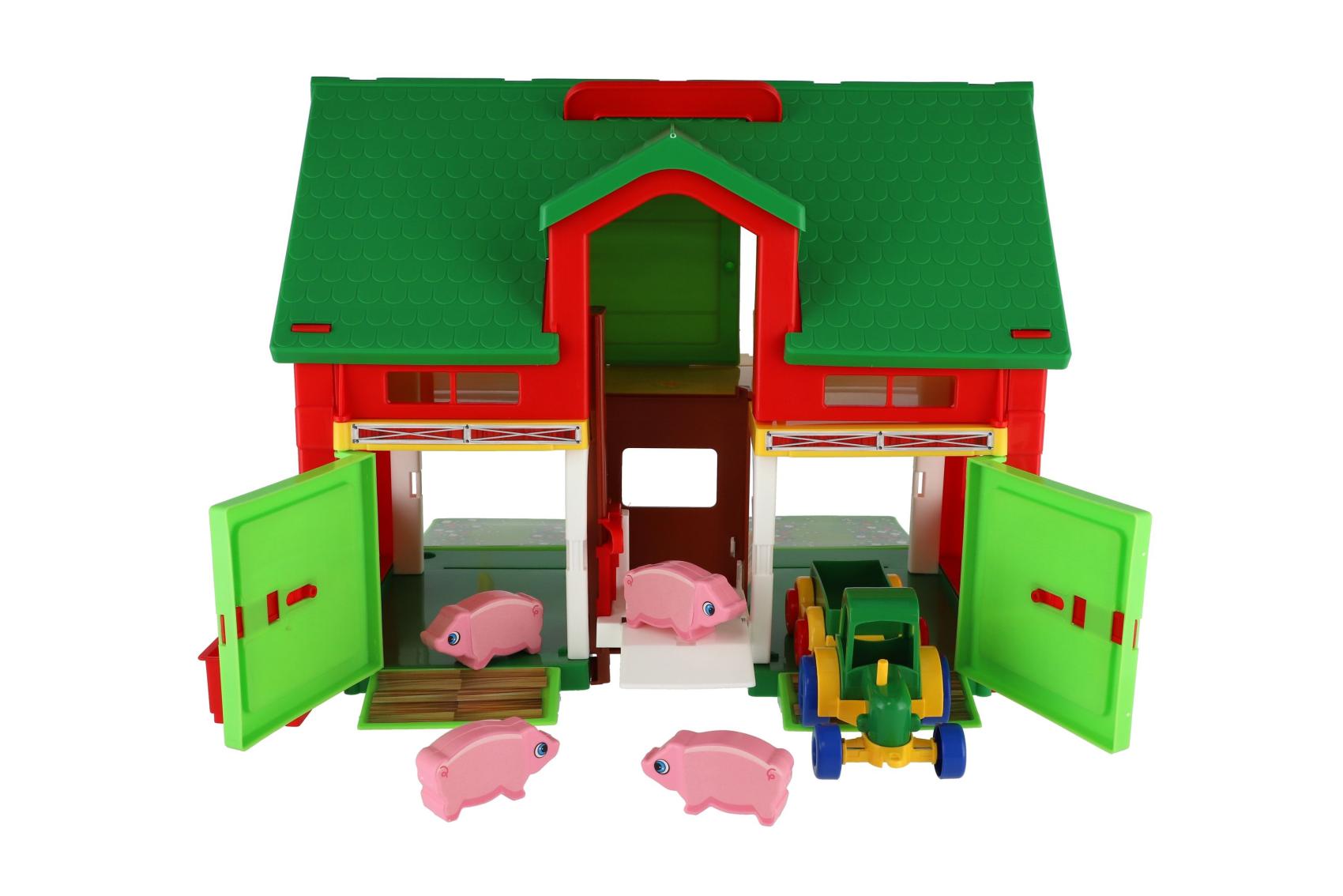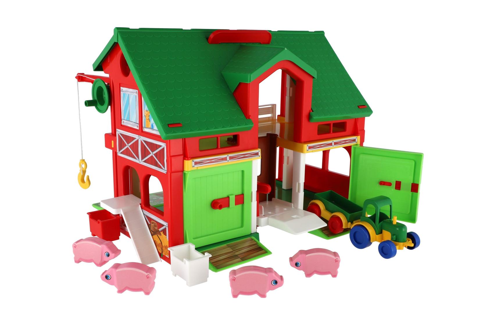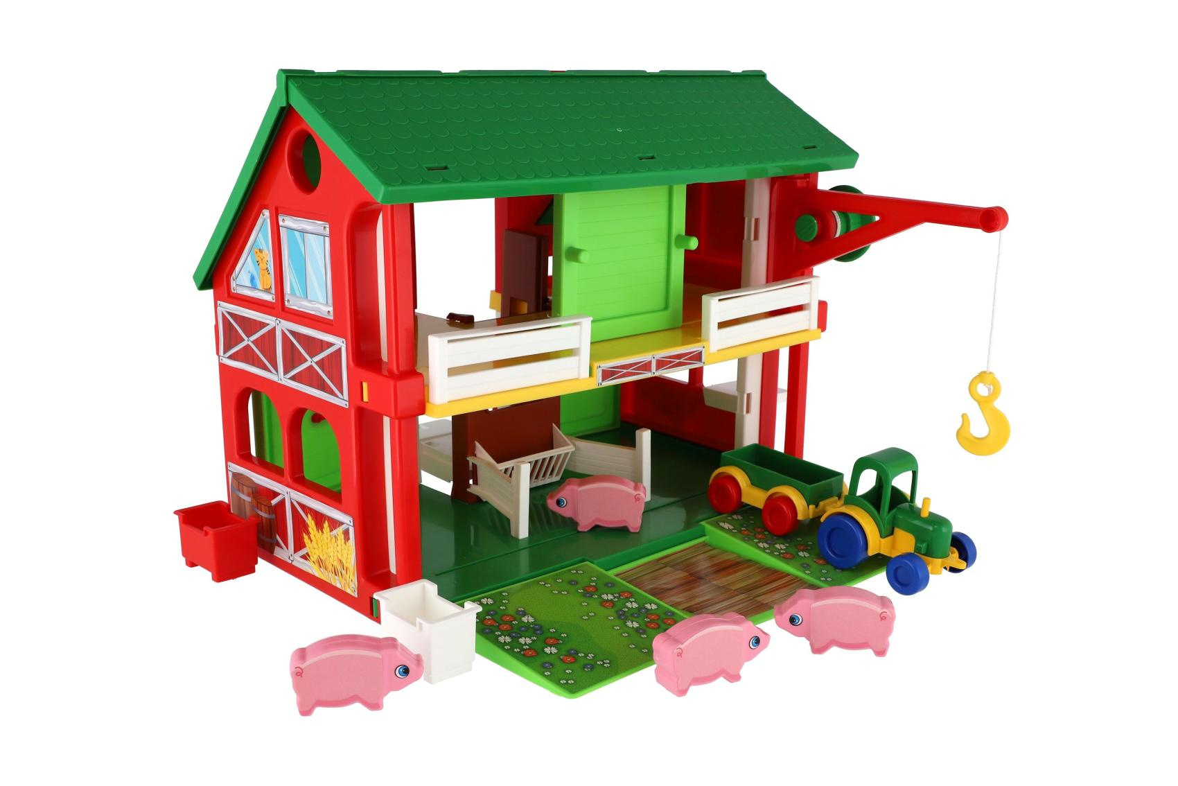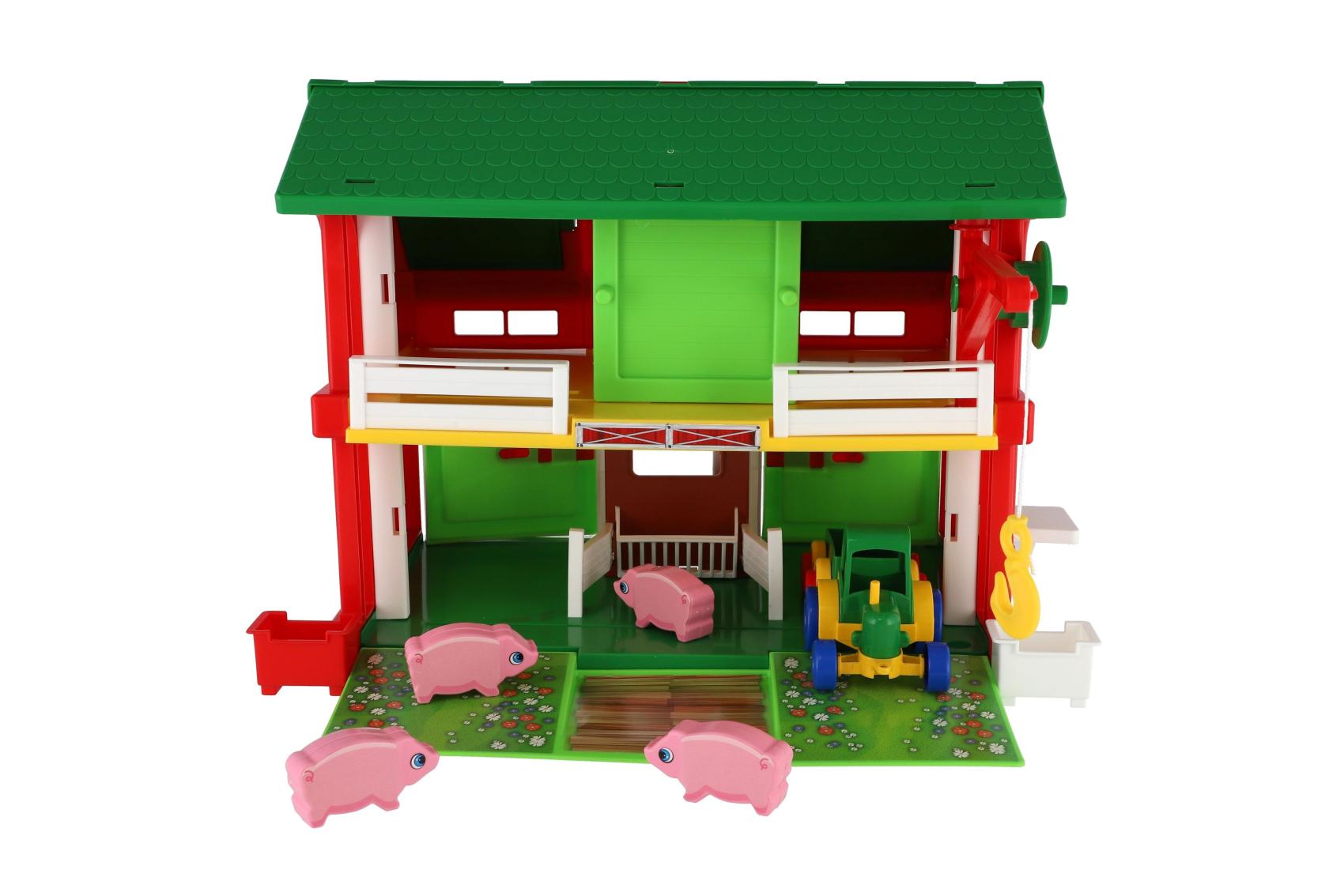 Vítej na farmě plné zvířátek a dobrodružství! Herní set Play House – Farma umožňuje dětem vytvořit si vlastní venkovský svět, kde se mohou starat o zvířátka.k Sada obsahuje ohradu, farmáře, nářadí, zvířátka a další tematické doplňky. Hra podporuje představivost, empatii i jemnou motoriku. Děti si mohou hrát na krmení, úklid nebo převoz zvířátek – zábava, která nikdy nekončí. Pomocí výtahu dokáže uklízet i balíky sena. Na farmě nesmí chybět traktor s valníkem, který obstará polní práci. Velikost: 30x37 cm Vhodné pro děti od 3 let.