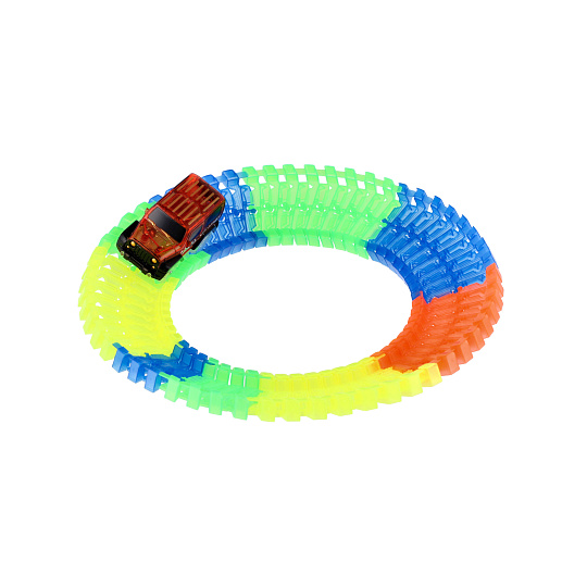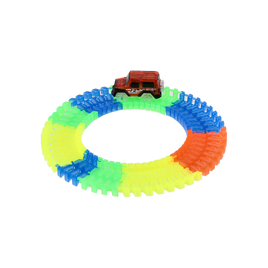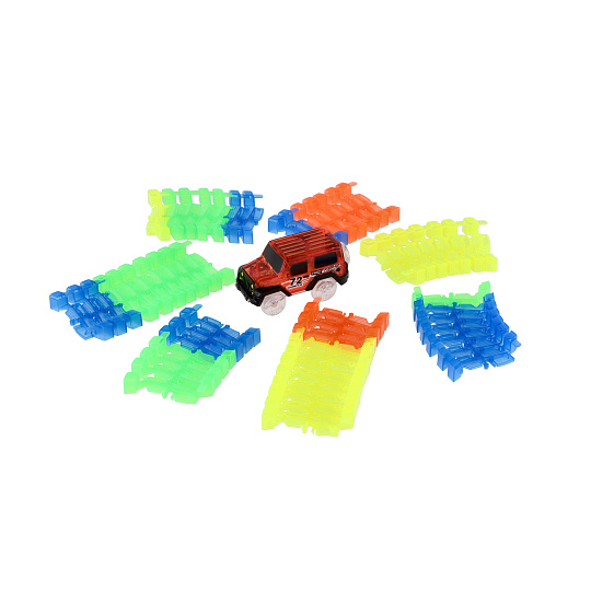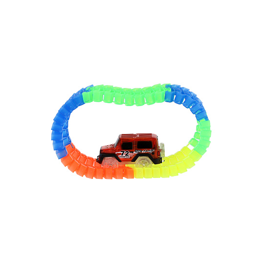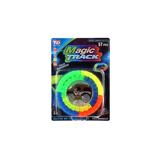 Dráha svítící ve tmě + auto na baterie plast 57ks délka 72cm na kartě 17x24x7cm