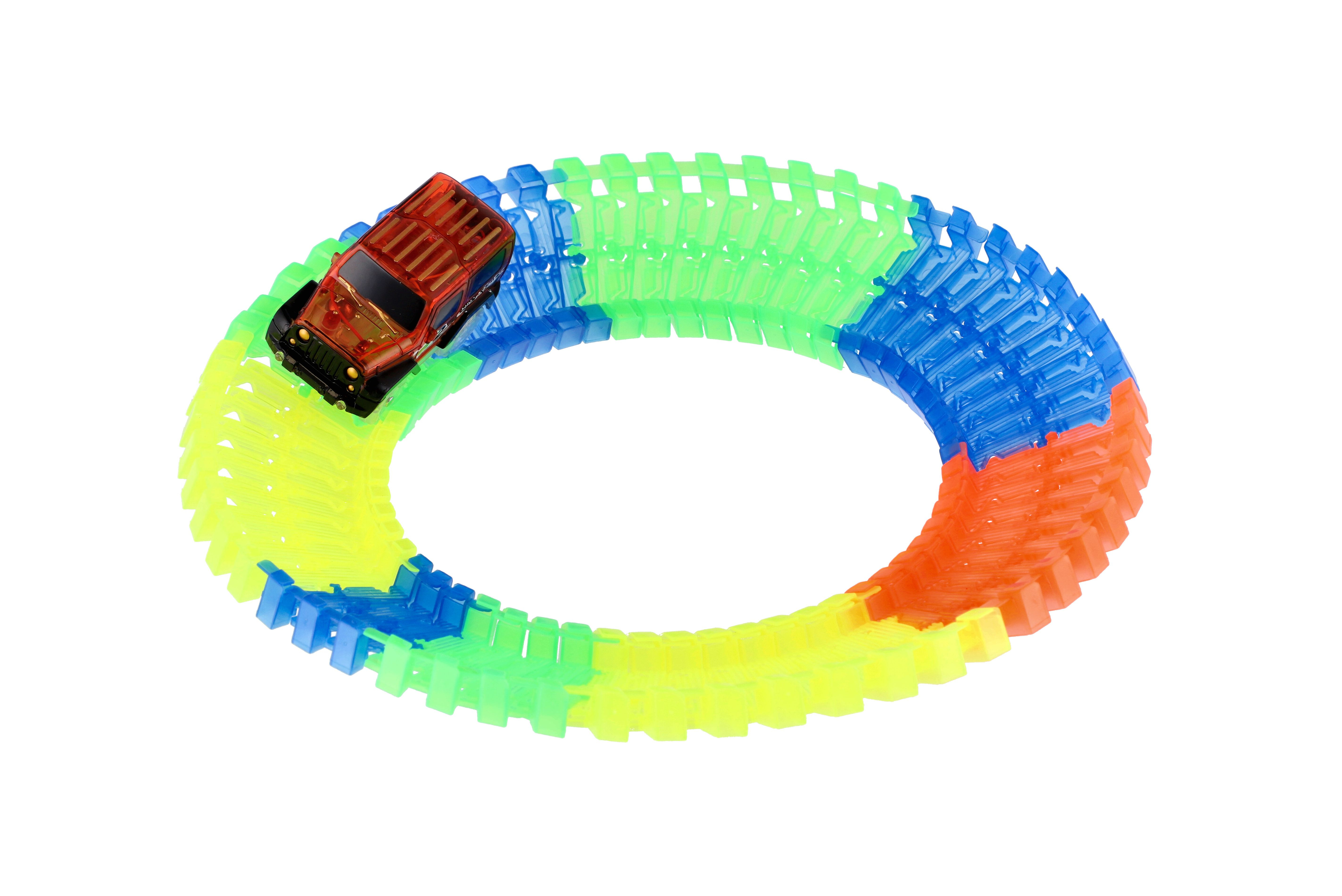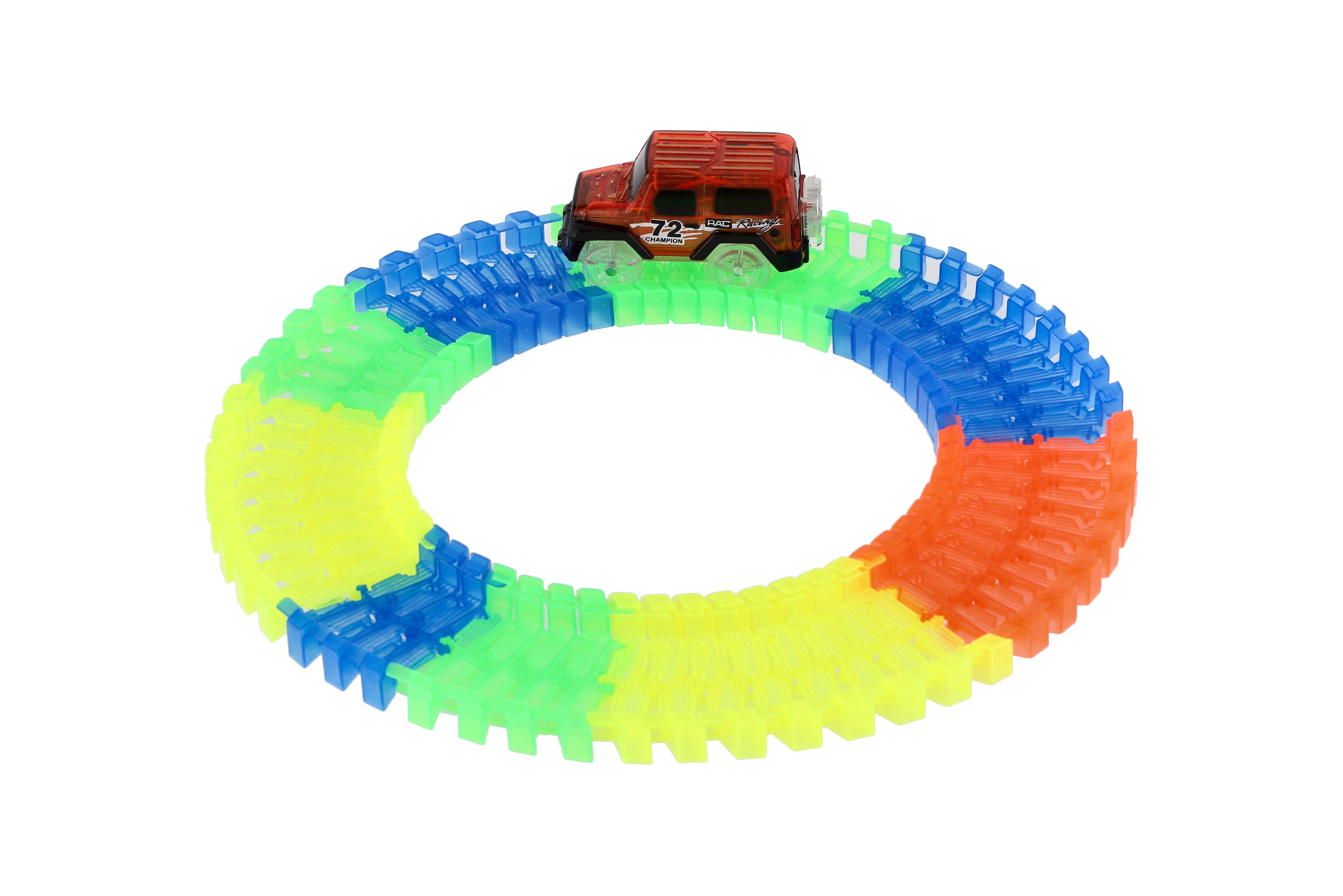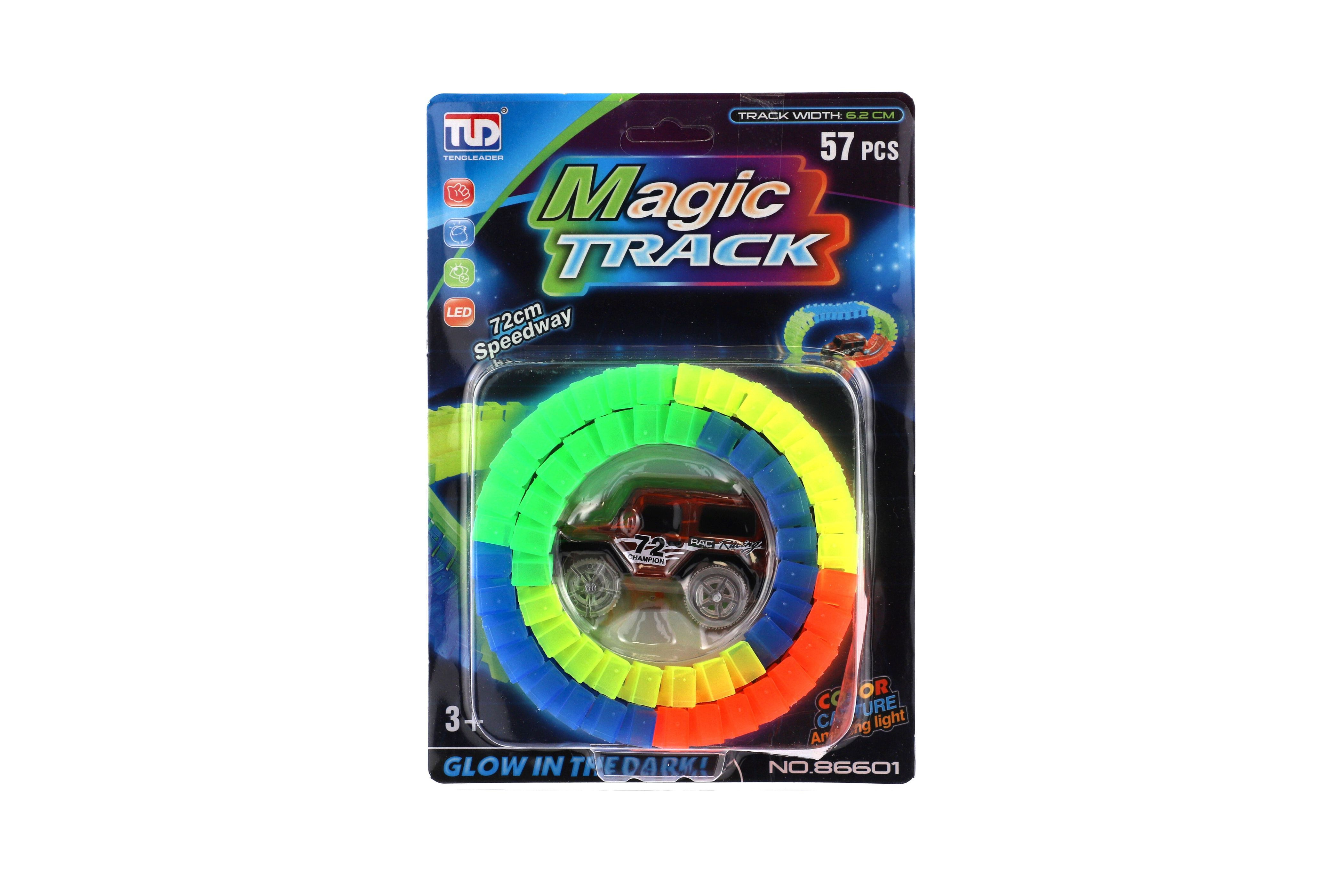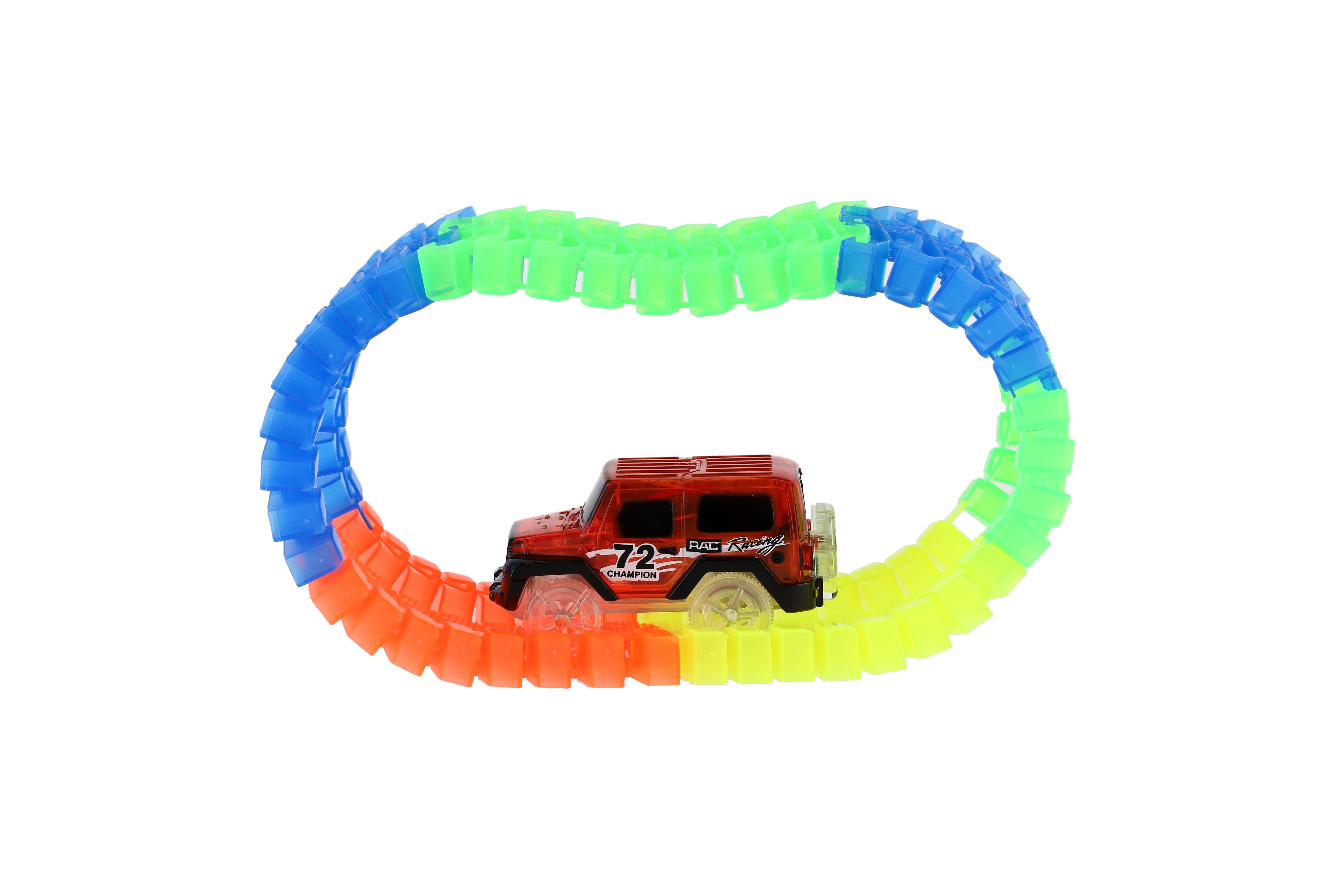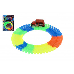 Dráha svítící ve tmě + auto na baterie plast 57ks délka 72cm na kartě 17x24x7cm