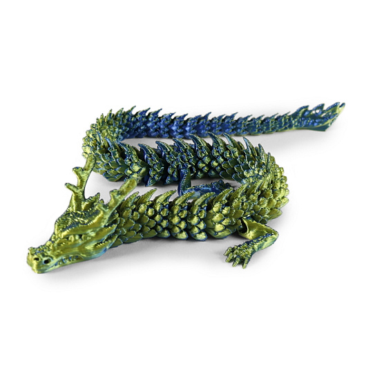 Zábavná hračka v podobě čínského draka o délce cca 27 cm upoutá svým originálním vzhledem i pohyblivostí. Díky konstrukci z jednotlivých dílků lze draka snadno ohýbat, kroutit a tvarovat do různých pozic, což přináší nekonečné možnosti zábavy. Drak působí téměř magicky díky svému atraktivnímu provedení s jemným kovovým nádechem, který mu dodává jedinečný a poutavý vzhled. Skvěle se hodí jako žertovinka, dekorace nebo hračka pro kreativní hraní.
