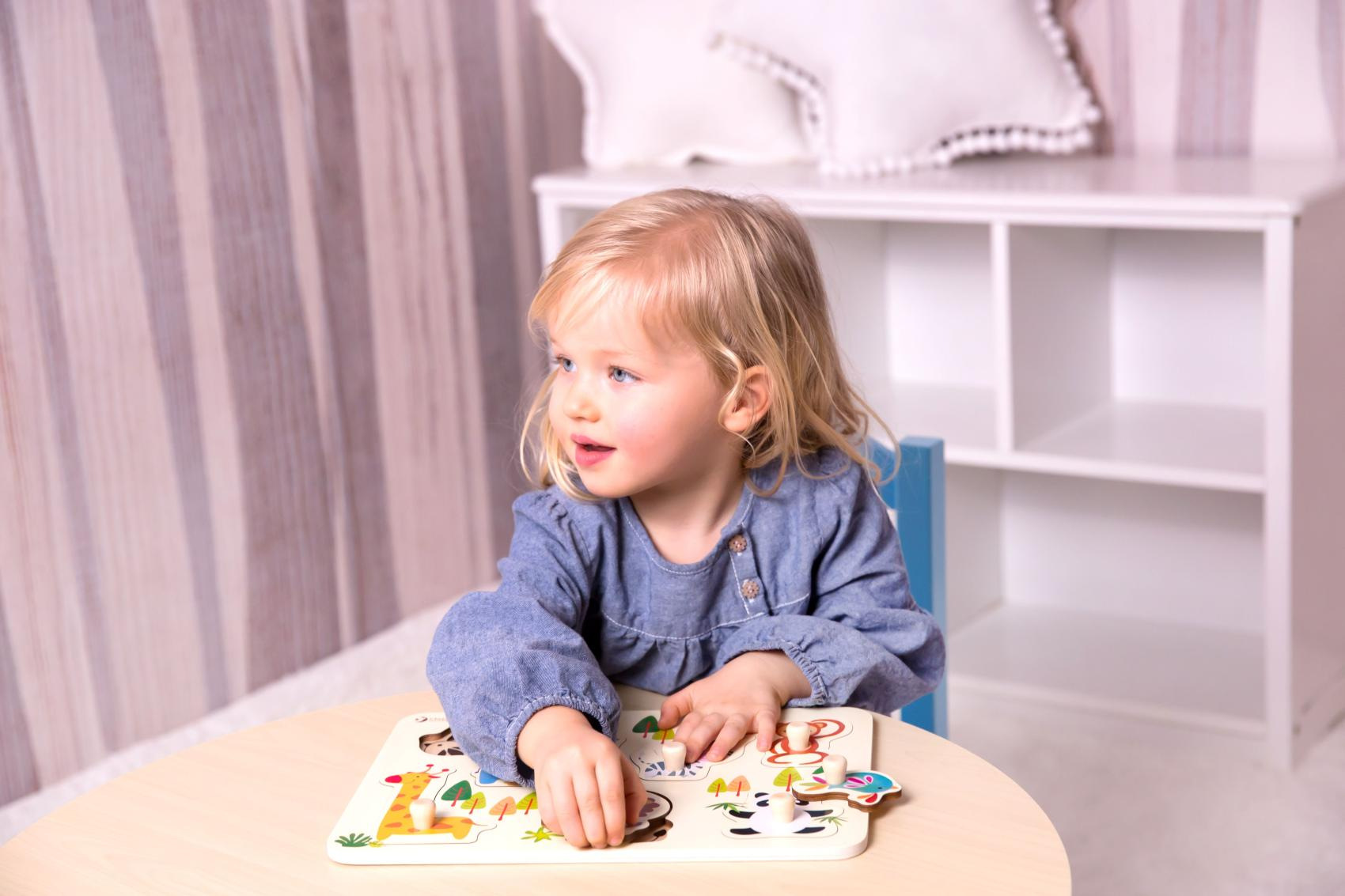 Naučte své dítko rozeznávat zvířátka v ZOO už od kolébky. S dřevěnou vkládací destičkou si nejvíc vyhrají prckové od 18 měsíců, spolehlivě ale zaujme i mladší zvědavce. Umisťováním zvířátek do správných otvorů (ale i jejich vyhazováním, strkáním do pusy či schováváním na nejtajnější místa) si děti procvičí motoriku, fantazii a rozlišovací schopnosti. Kvalitní dřevo pro vkládačku je precizně opracováno tak, aby dítěti nehrozilo poranění ani při divočejším zacházení. Vkládačka obsahuje 8 dílů včetně destičky. Rozměry výrobku 30 x 21 x 2 cm. Vhodné pro děti od 18 měsíců.