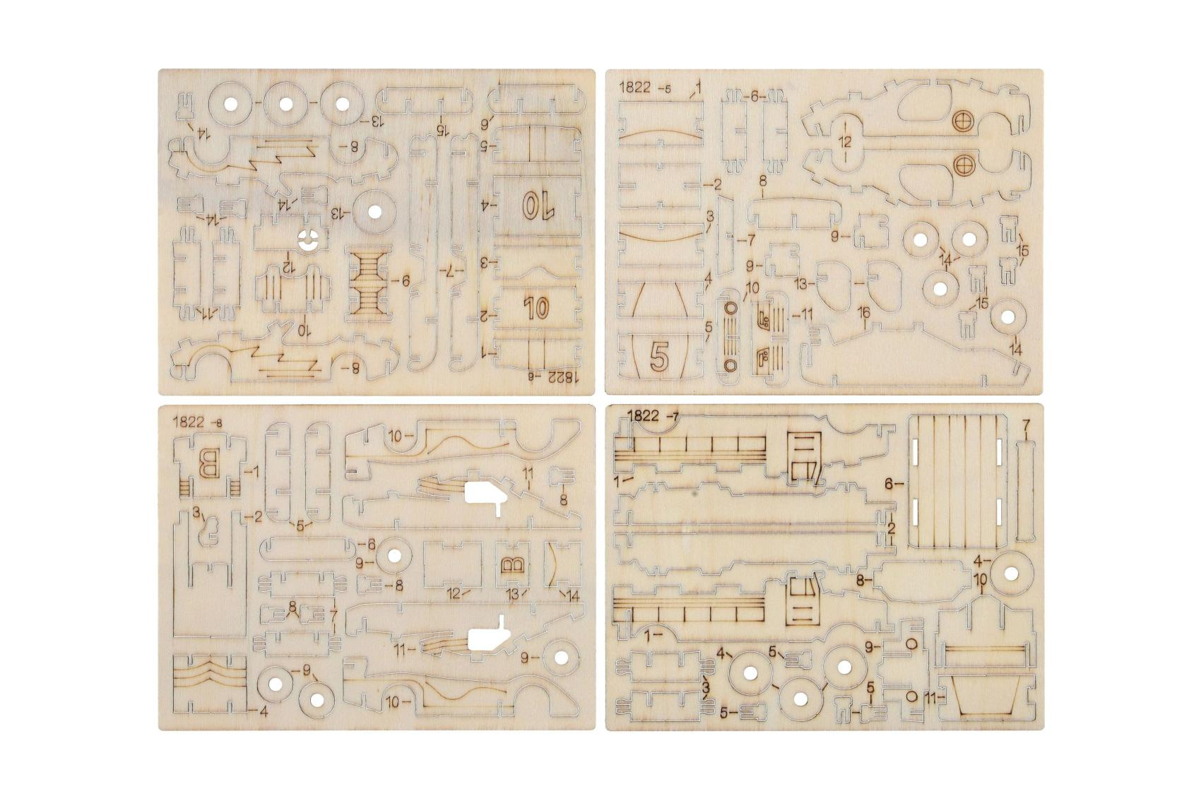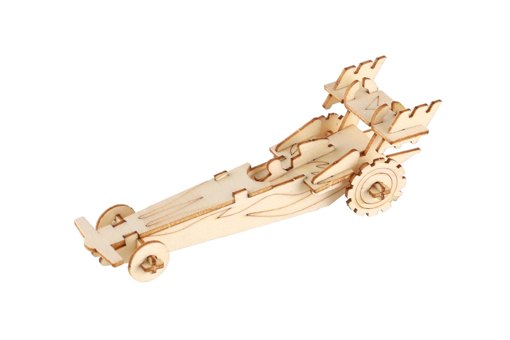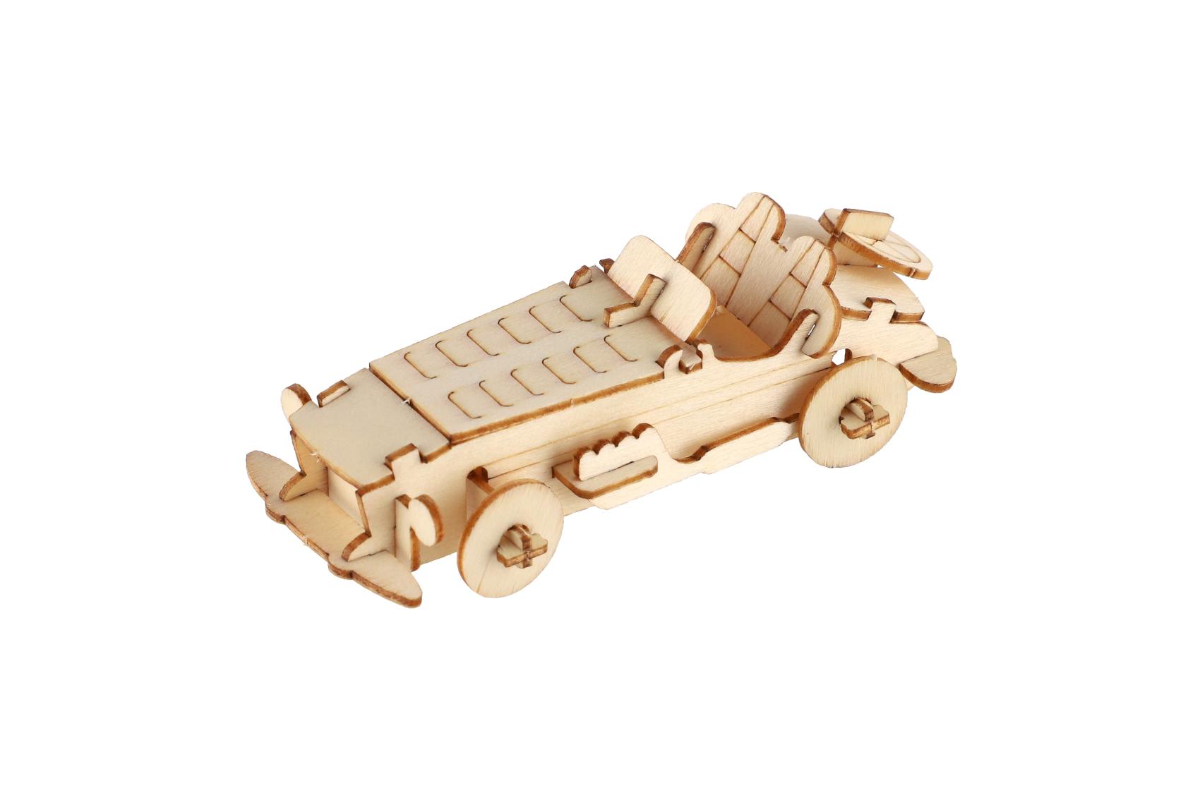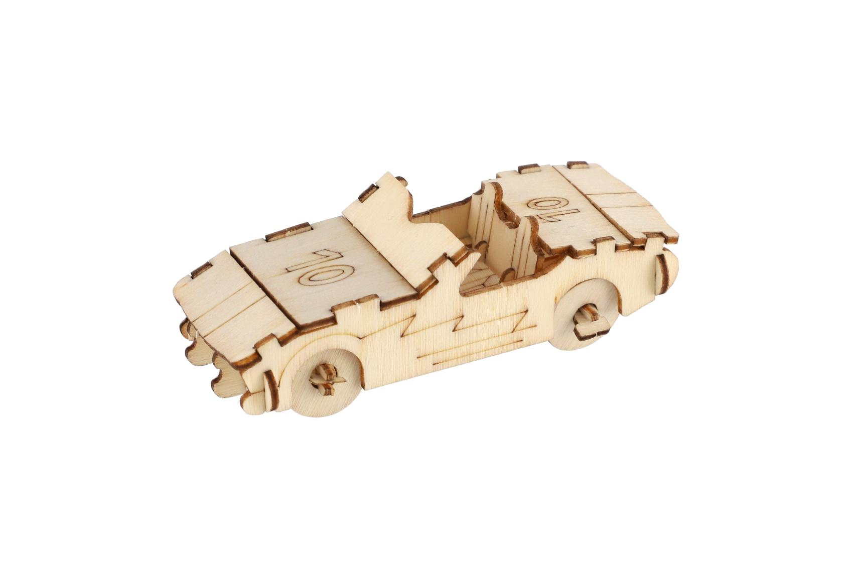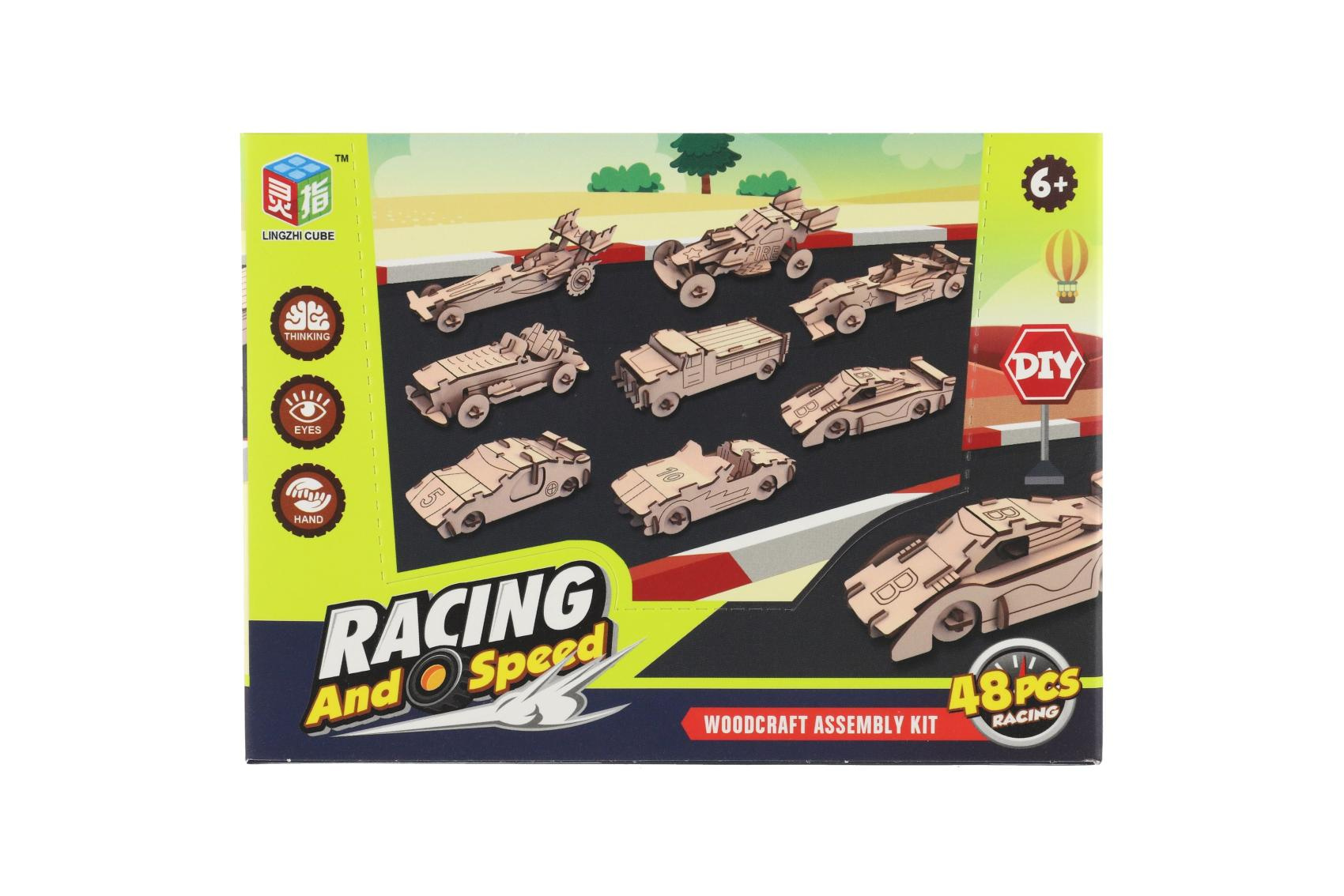 Kreativní dřevěná stavebnice v podobě závodních aut nadchne všechny malé konstruktéry i milovníky rychlých kol. Jednotlivé dílky se jednoduše vylamují z dřevěné překližky a skládají bez použití lepidla. Výsledkem je detailně propracovaný model auta, který poslouží jako hračka i stylová dekorace. Každé balení obsahuje 4 ks stavebnice. Stavebnice podporuje rozvoj jemné motoriky, trpělivosti, logického myšlení a prostorové představivosti.