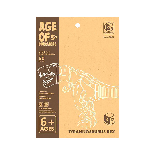 Dřevěná 3D stavebnice puzzle dinosaura rozhodně nesmí chybět ve tvém pokojíčku! Tato hračka neslouží pouze k vystavení na poličce. Díky této stavebnici se rozvíjí u dětí myšlení, jemná motorika i představivost. Jednotlivé dílky lze jednoduše vyloupnout a poskládat dle přiloženého návodu. Puzzle obsahují 49 dílků.