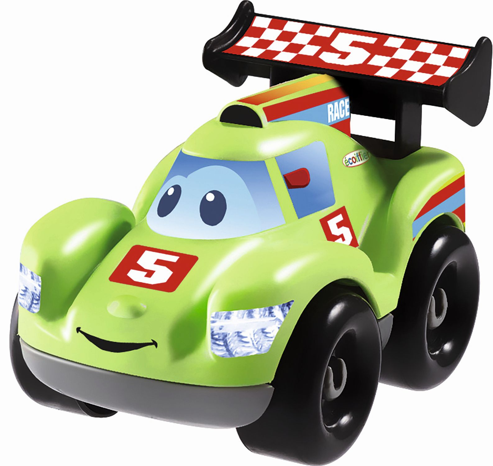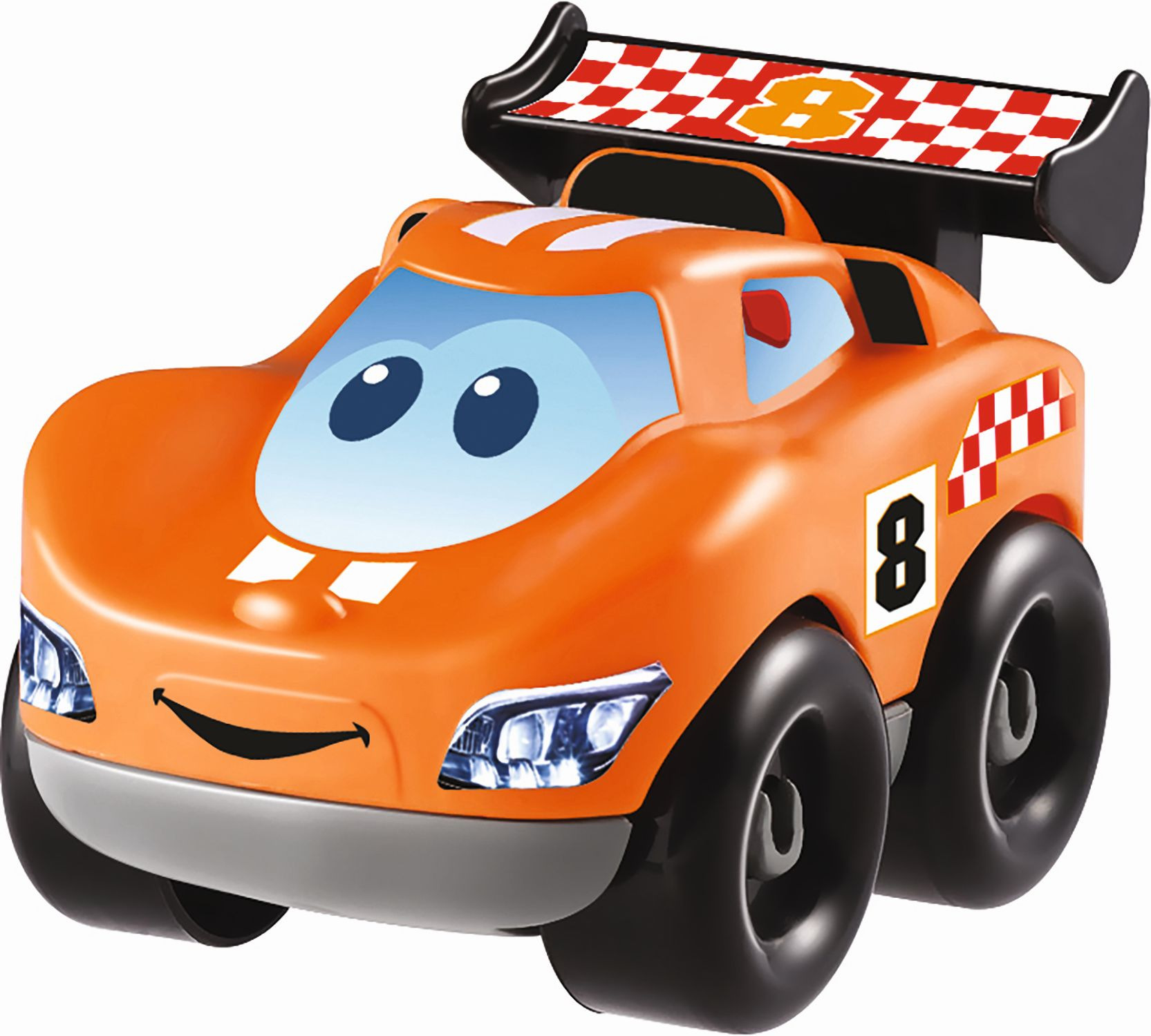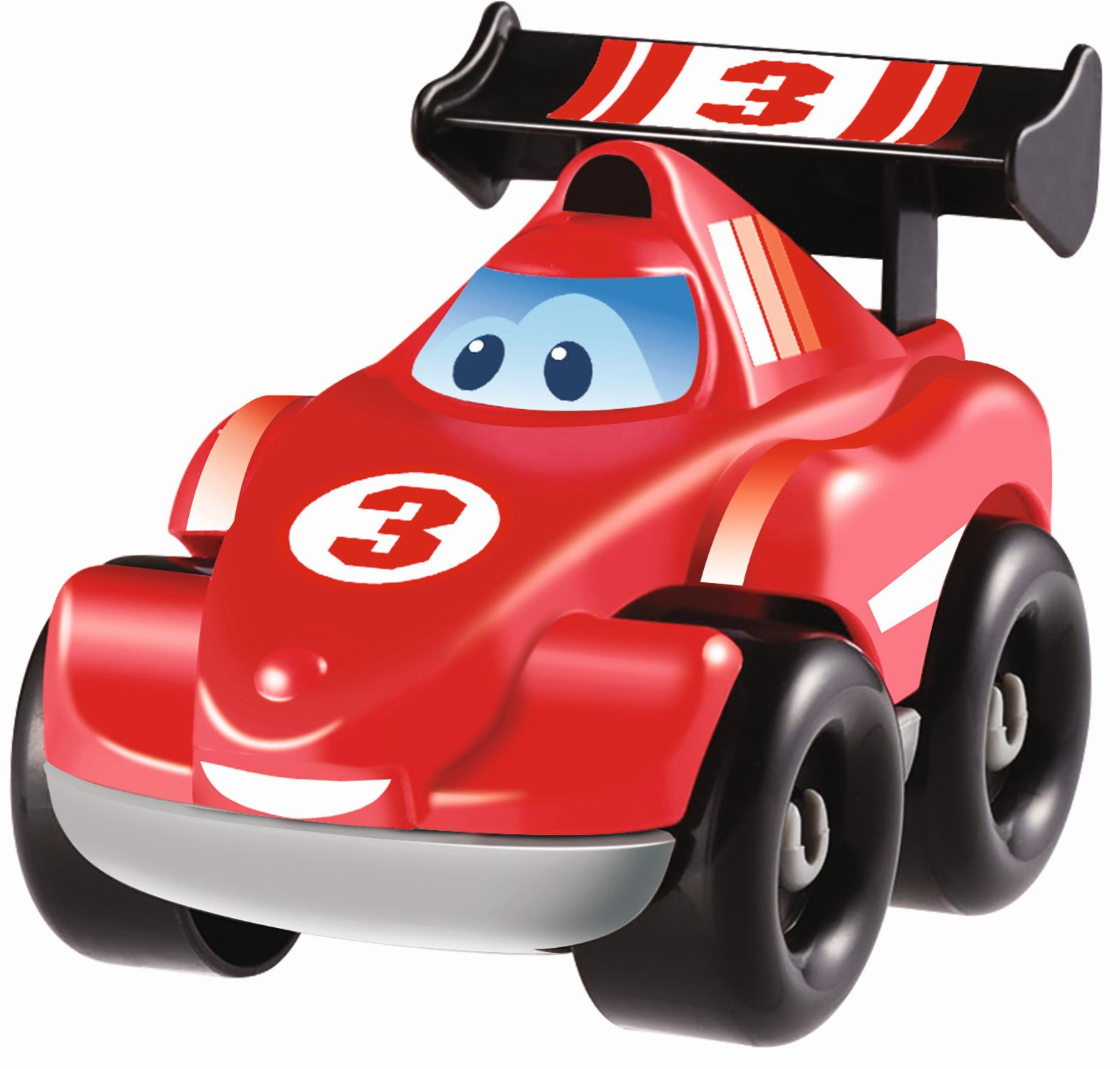 Tři modely závodních aut s vyměňovatelnou karosérií. Každý model závodního auta s legračním obličejem je bez ostrých hran a snadno se drží. Ideální pro malé dětské ručičky. Rozměry produktu (DxŠxV): 10 x 6,5 x 6,5 cm. Cena je za 1 kus.