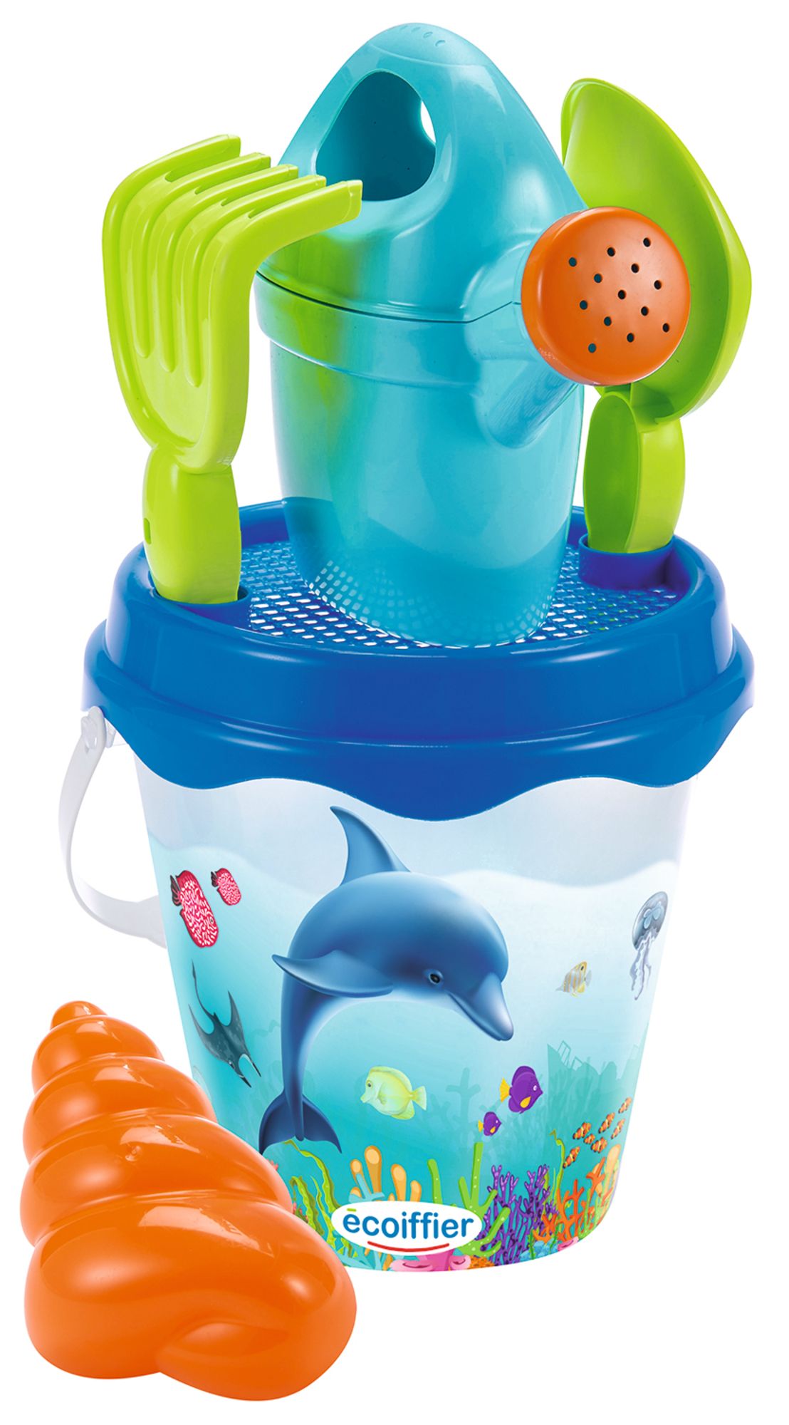 Ecoiffier Kyblíček Delfín s konvičkou a příslušenstvím, 17 cm