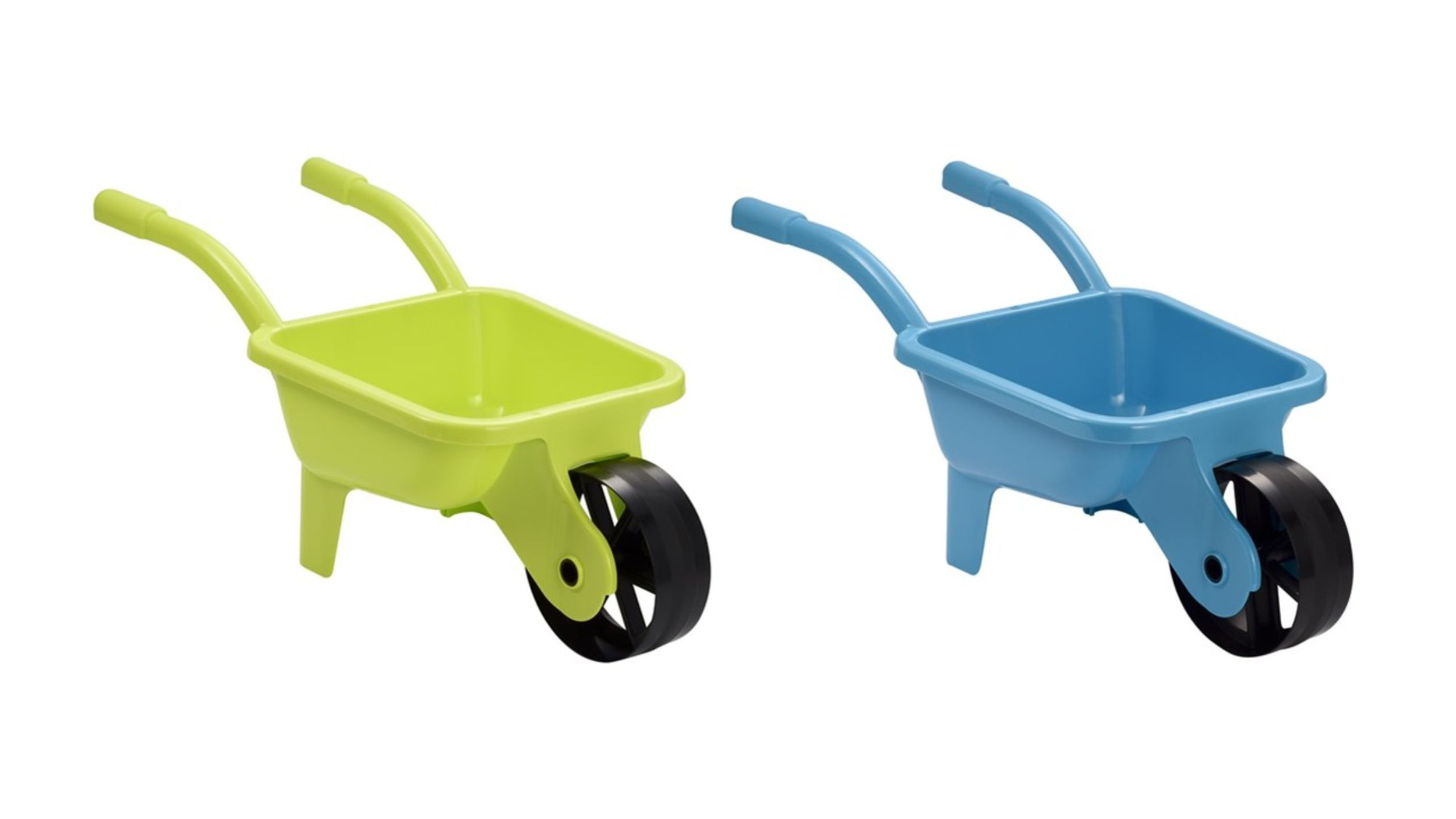 Zahradní kolečko žluté nebo modré. Rozměry 66 x 28 x 28 cm.