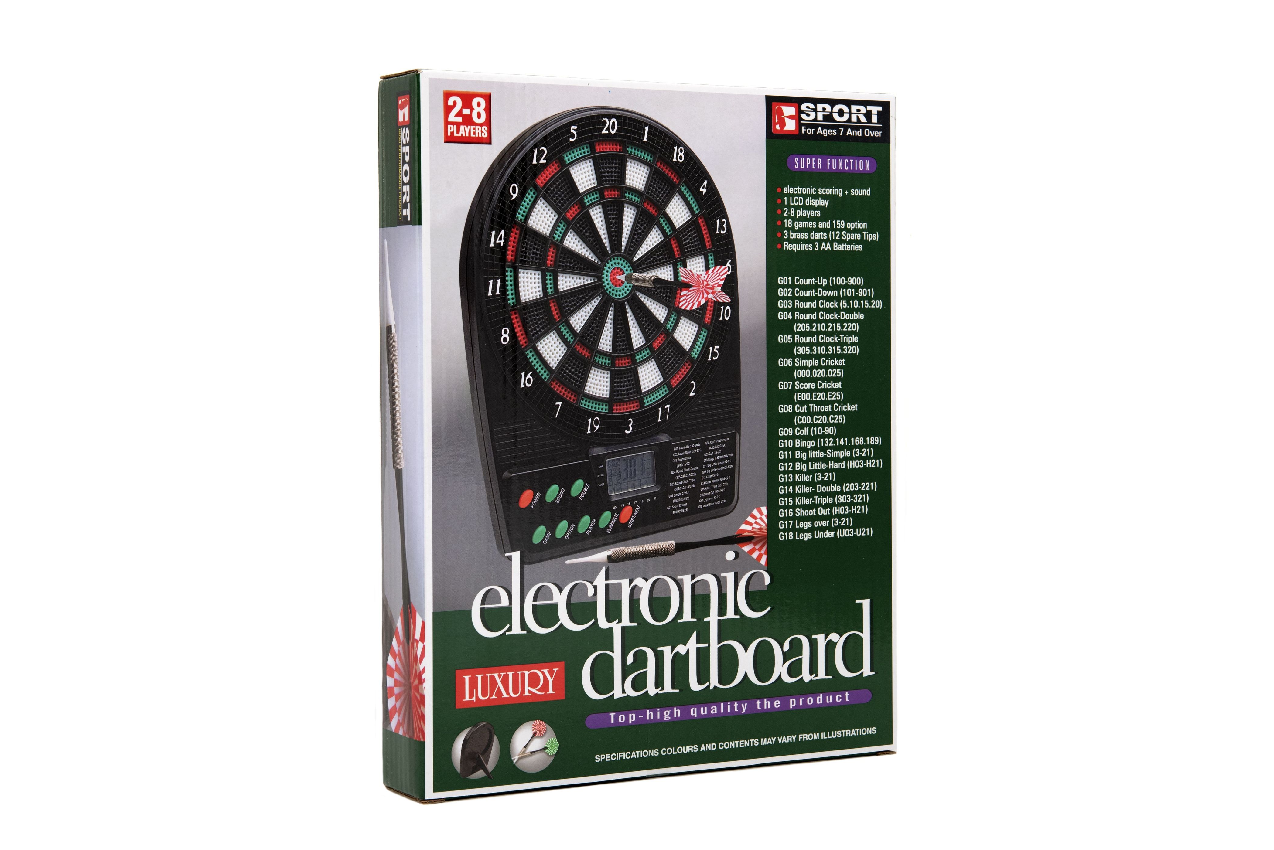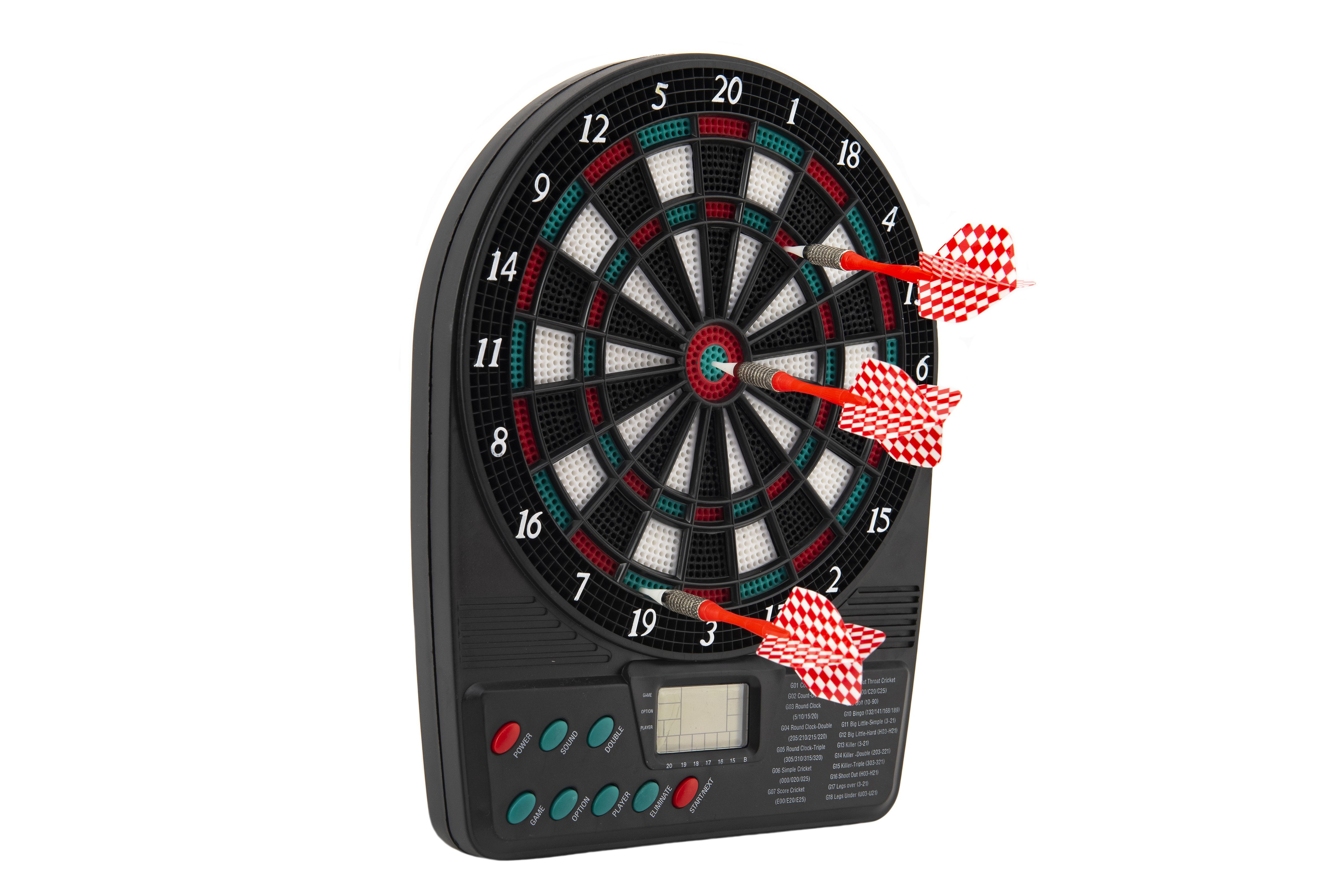 Střílení šipek na terč je velmi oblíbenou zábavou téměř všech kluků i spousty holek. V této sadě najdete elektronický terč 20 x 26 cm se 3 šipkami a 12 náhradními hroty. Obsahuje 18 her s více možnostmi a více úrovněmi. Baterie 3x AA nejsou součástí balení. Rozměry balení 21 x 27 x 4 cm. Vhodné pro děti od 3 let.