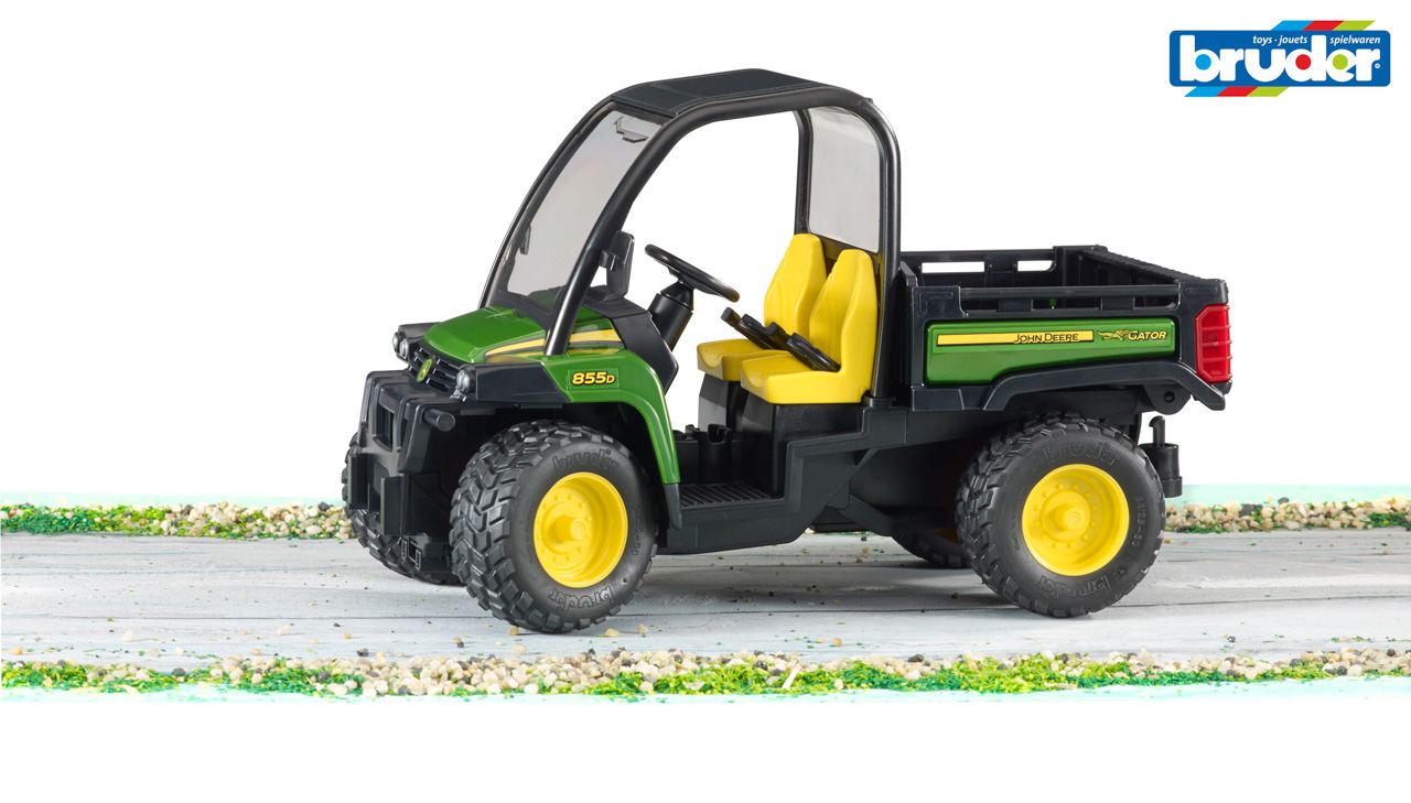 John Deere Gator 855D je skutečný všestranný pracovník, ať už pro zemědělské práce, jako podpora v lesnictví, pro práci ve městě nebo na stavbách. Díky této obzvláště úspěšné kombinaci efektivního užitkového vozidla a mini-mobilu, které lze použít kdekoli, je Gator něčím velmi jedinečným. Okna kabiny jsou z průhledného a nerozbitného plastu. Závěs pro zadní přívěs. Montážní adaptér pro přední zařízení. Dveře zavazadlového prostoru lze otevřít. Sklopná ložná plocha. Řízení čepu nápravy. Vyrobeno z vysoce kvalitních plastů. Vhodné pro hru doma i venku. Měřítko: 1:16. Rozměry produktu: 22,6 x 11,3 x 14 cm. Rozměr balení:18,5 x 15 x 27,5 cm. Věk: 3+