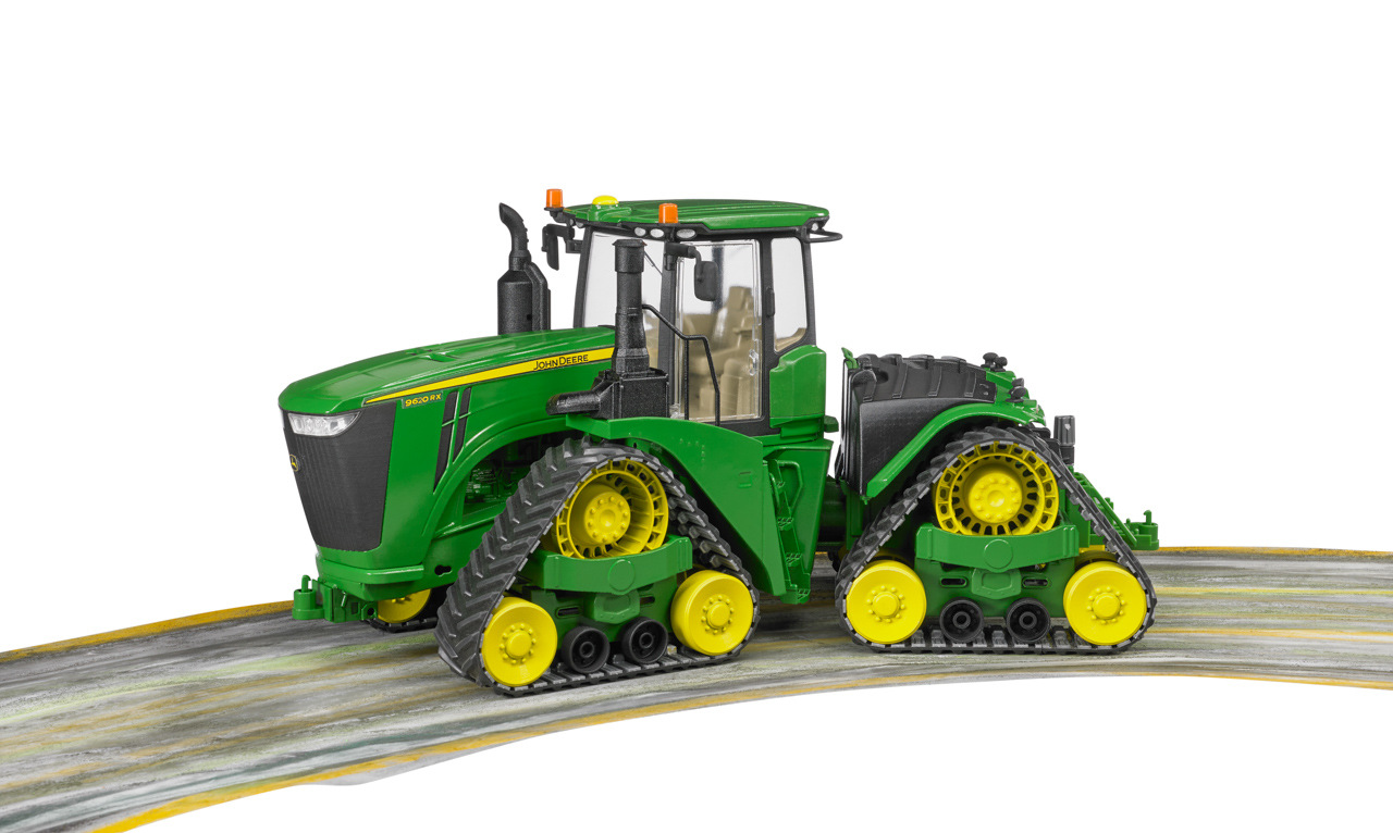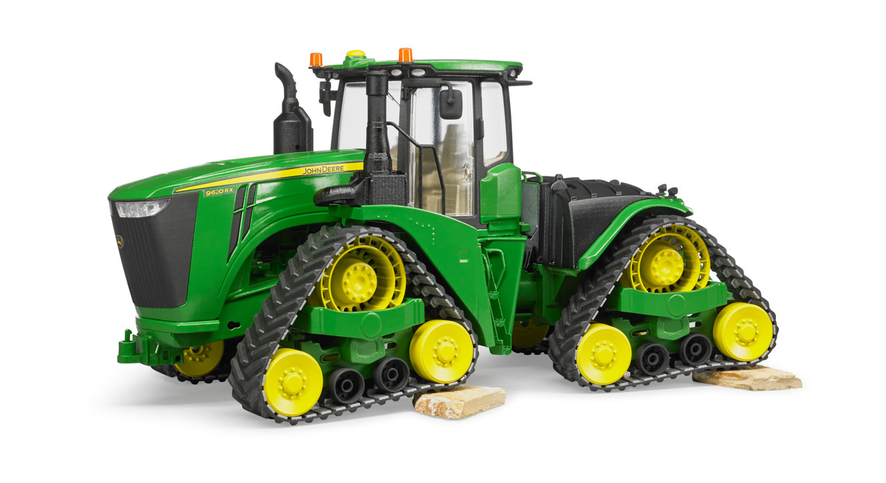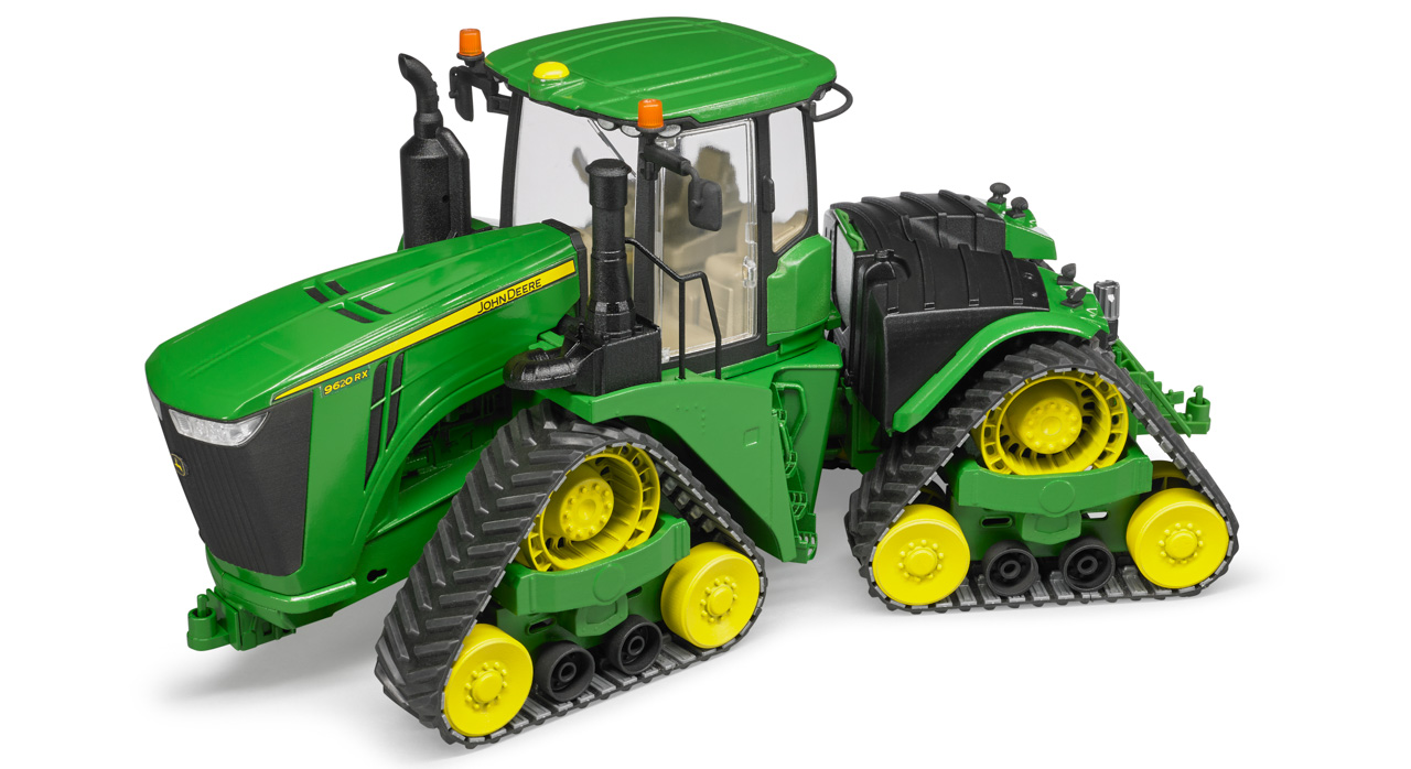 Strojem 9620RX představuje John Deere dosud nejvýkonnější a největší pásový traktor. S výkonem motoru až 670 koní a čtyřmi pásovými pásy, které mu dodávají neuvěřitelnou tažnou sílu a současně nejlepší možnou ochranu půdy, je dokonalým partnerem, pokud jde o zvládnutí nejtěžší tažné práce s přídavnými zařízeními, jako je kultivátor, pluh a setí (prodejné samostatně). Tento impozantní traktor je nyní k dispozici také v měřítku 1:16 s jedinečnou úrovní detailů. Stejně jako originál má model 4 nově vyvinuté pohony housenek a terénní kloubové řízení. Kabina řidiče má dveře, které lze otevřít, a také impozantní kapotu lze otevřít a ukazuje obrovský motor. K spojce přívěsu lze pomocí výškově nastavitelného zvedacího zařízení připojit řadu přívěsných zařízení ze zemědělské řady BRUDER. Vyrobeno z vysoce kvalitních plastů. Vhodné pro hru doma i venku. Měřítko: 1:16. Rozměry traktoru: 50 x 19 x 23,5 cm. Rozměry balení: 26 x 20 x 58,5 cm. Věk: 4+