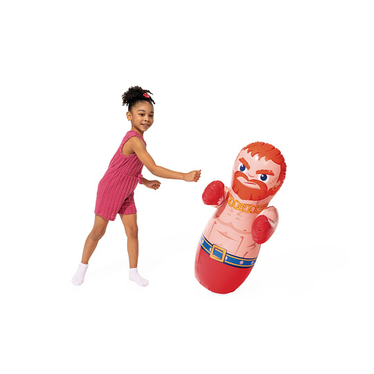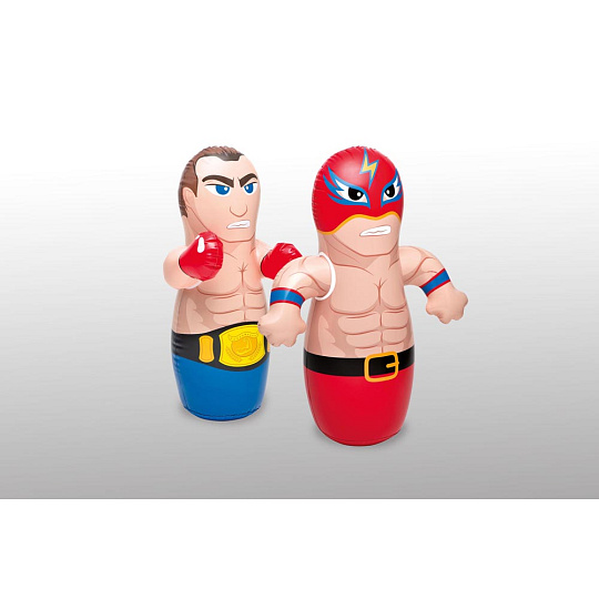 Nafukovací boxovací figurka určená pro vnitřní i venkovní použití. Boxovací panák udrží svou stabilitu díky vodní zátěži umístěné ve spodní části této hračky a lze se s ním tak donekonečna prát. Panák je dostupný ve dvou provedeních a je vyroben z kvalitního pevného vinylu (0,20mm). Výrobek není primárně určen do vody, ale je vhodný pro širokou škálu venkovních aktivit. Zajímavá hračka pro vaše děti. Rozměry 91 x 51 cm (boxer), 91 x 72 cm (wrestler). Rozměry balení 13 x 19 x 5 cm. Vhodné pro děti od 3 let.
