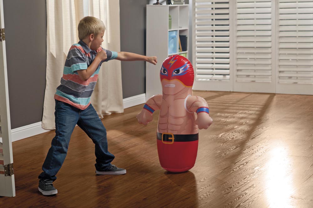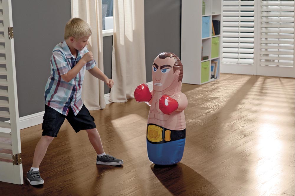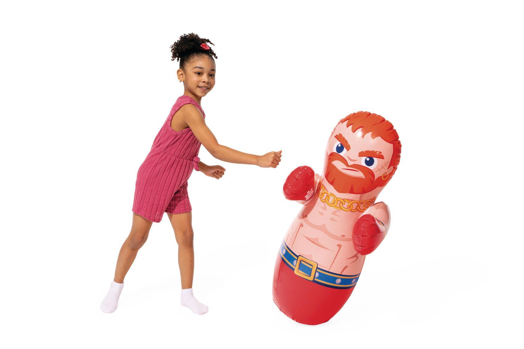 Nafukovací boxovací figurka určená pro vnitřní i venkovní použití. Boxovací panák udrží svou stabilitu díky vodní zátěži umístěné ve spodní části této hračky a lze se s ním tak donekonečna prát. Panák je dostupný ve dvou provedeních a je vyroben z kvalitního pevného vinylu (0,20mm). Výrobek není primárně určen do vody, ale je vhodný pro širokou škálu venkovních aktivit. Zajímavá hračka pro vaše děti. Rozměry 91 x 51 cm (boxer), 91 x 72 cm (wrestler). Rozměry balení 13 x 19 x 5 cm. Vhodné pro děti od 3 let.