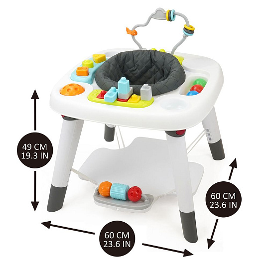 Interaktivní stůl se sedátkem 3v1, je reakcí na potřebu batolete vnímat svět všemi smysly. Umožňuje dítěti skvělou zábavu spojenou s učením a komplexně podporuje motoriku dítěte. Nyní si každé batole může hrát doslova „se sebou“!