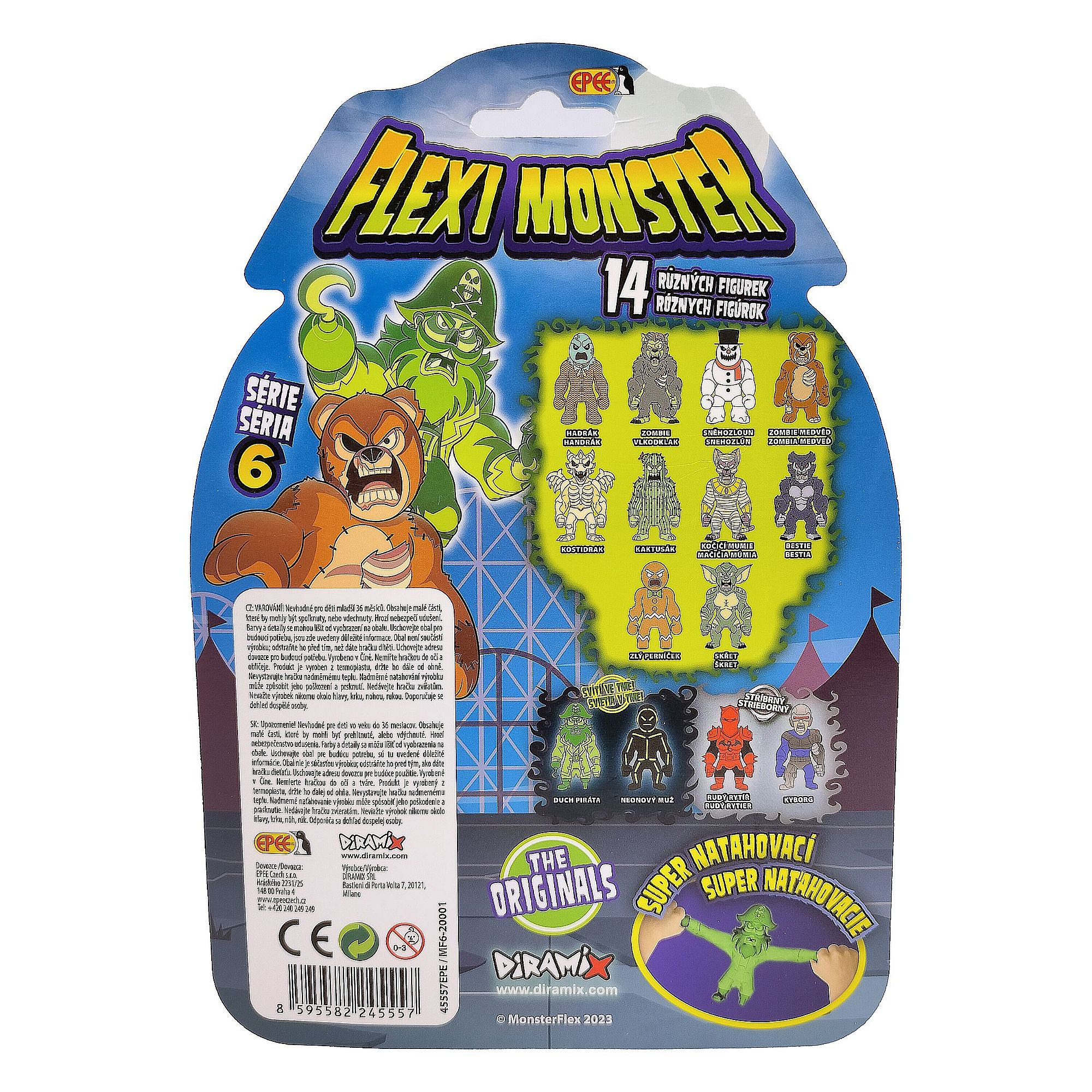 Flexi Monster série 6 je tady! Na výběr máte ze 14ti různých strašidelných figurek. Natahujte je, roztahujte je, mačkejte je, proplétejte jim končetiny. Jsou odporní, jsou strašidelní, ale rozhodně vás nebudou nudit. Rozměry balení 16 x 23 x 5 cm. Vhodné pro děti od 3 let.
