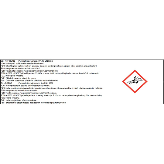 Žádná párty se neobejde bez těchto párty fontán! Jedno balení obsahuje 3 kusy barevné párty fontány o délce 12 cm s efektem zlatých hvězdiček. Délka trvání 40 sek. Prodáváno pouze po 3 kusech a je určena pouze pro venkovní využití. P210 Chraňte před teplem, horkými povrchy, jiskrami, otevřeným ohněm a jinými zdroji zapálení. Zákaz kouření. P250 Nevystavujte obrušování, nárazům, tření. P280 Používejte ochranné rukavice, ochranný oděv, ochranné brýle. P370 + P380 + P375 V případě požáru: Vykliďte prostor. Kvůli nebezpečí výbuchu haste z dostatečné vzdálenosti P372 Nebezpečí výbuchu.