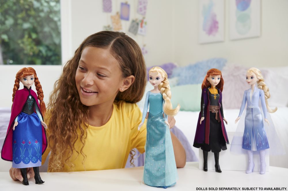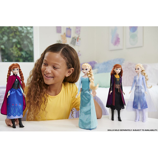 Tato kolekce panenek přináší panenky Annu a Elsu z obou filmů Disney Ledové království a Ledové království 2. Každá panenka má sukni z měkkého materiálu, plášť a krásné vlasy. Panenky se prodávají samostatně dle aktuální nabídky. Barvy a vzhled výrobku se mohou lišit.