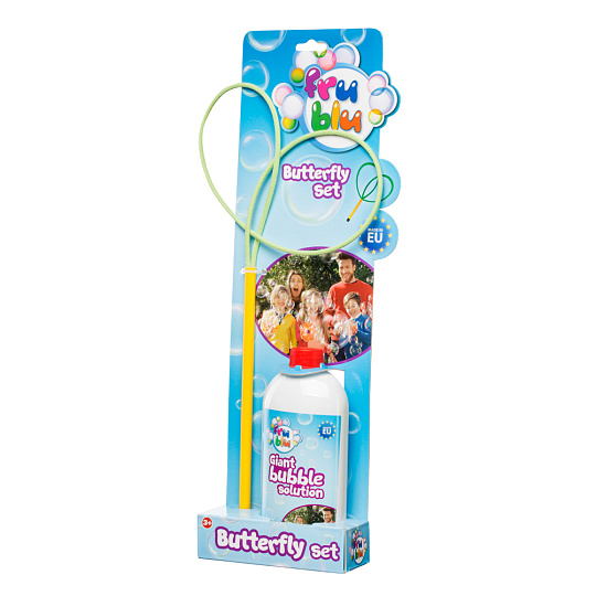 "Bubliny, které děláte smyčkou ve tvaru motýla vytvářejí úžasné efekty. Smyčka ve tvaru motýla je ideální na vytváření velkých bublin jen za pomoci větru. Univerzální obruč, je vhodná i pro děti. Již při malém množství tekutiny dokážete vytvořit úžasné bubliny. Bubliny FRU BLU dosahují obrovských rozměrů a mají neskutečné tvary. Září všemi barvy duhy. Bubliny FRU BLU vznikají díky speciální tekutině, která je produkovaná v EU. Jsou trvanlivé a jen tak neprasknou." ... více