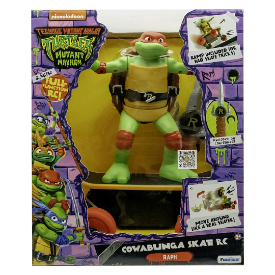 RC Cowabunga Skate je plně funkční 2,4 GHz dálkově ovládané skateboardové vozidlo postavené pro plynulou jízdu a napodobování skutečných skateboardových triků. Použijte dálkový ovladač k pohybu skateboardu ze strany na stranu, dopředu, dozadu a jakýmkoliv směrem. Navrženo ve stylu Raphaela, který drtí ulice New Yorku. Pokud spadne, nebojte se, otočte ho a on se hned zvedne. Cowabunga dude!