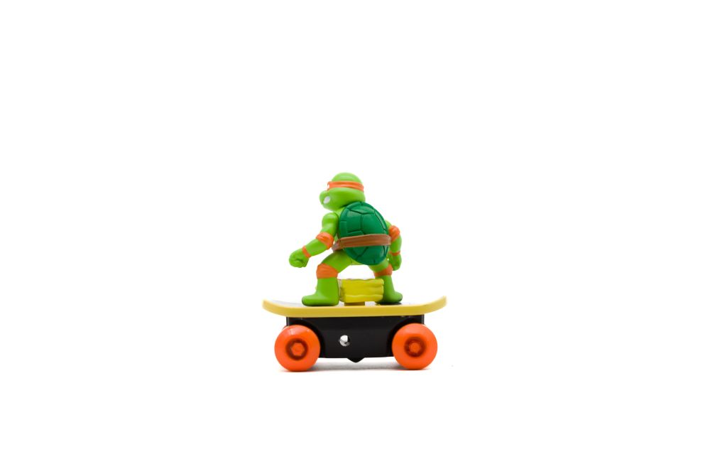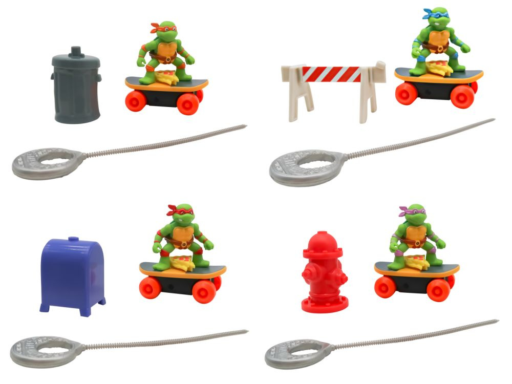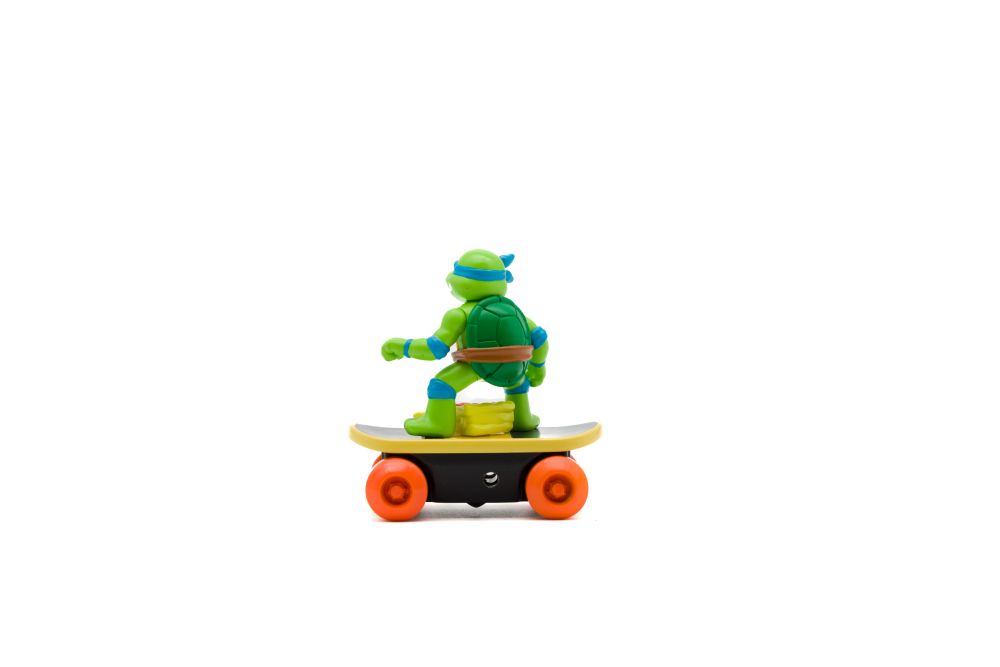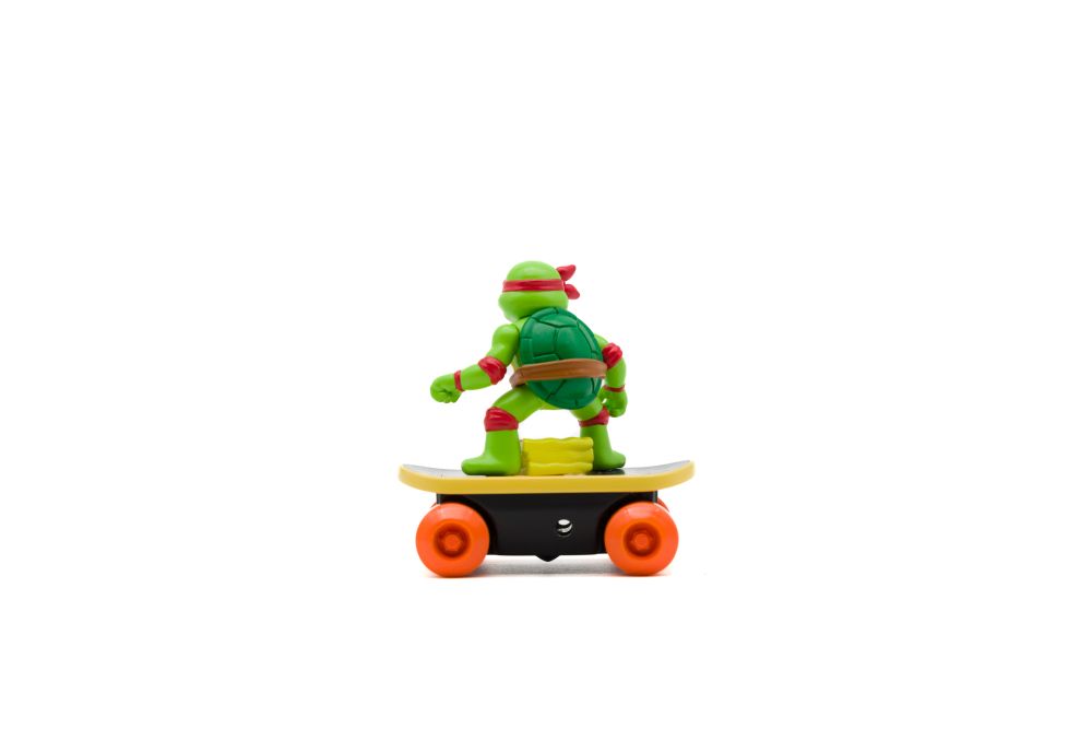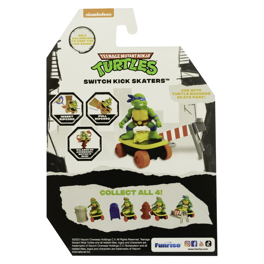 Teenage Mutant Ninja Turtles Switch Kick Skaters je auto-stabilizační skateboard, který vám umožní předvádět skvělé skate triky a pokaždé přistát na všech čtyřech kolech. Auto-stabilizační mechanismus (gyro) uvnitř skateboardu je napájen natahovacím lankem. Stačí zasunout natahovací lanko do skateboardu, vytáhnout a můžete začít provádět ty nejlepší triky s želvami Ninja. Nasbírejte všechny 4 postavy! Vhodné pro děti od 4 let.