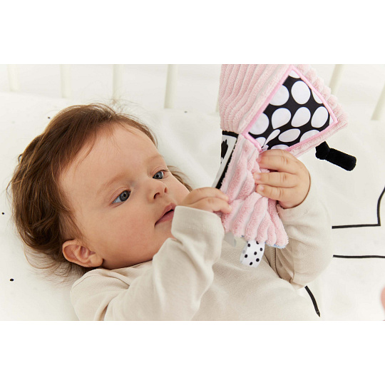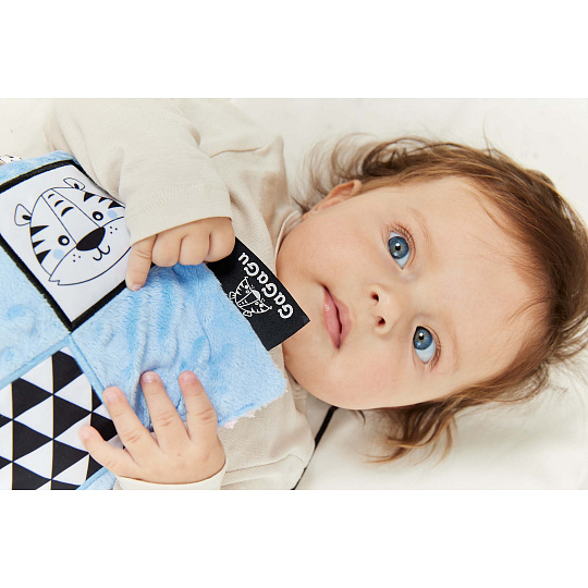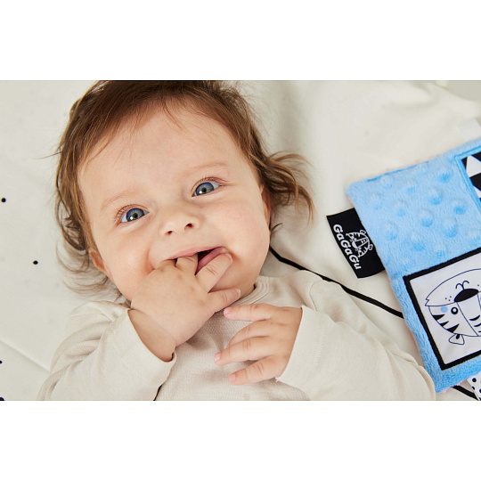 Dečka má kontrastní barvy a vzory, což stimuluje zrak dítěte a šustivý materiál uvnitř hračky stimuluje jeho sluch. Dítě má možnost poznávat různé textury, díky kterým si rozvíjí hmat. Doplňkové stuhy, plyšová poutka, velký štítek - usnadňují dítěti uchopení hračky a podporují tzv. cvičení jemné motorické dovednosti (pohyby prstů a rukou). Dečka je oboustranná - na každé straně má jinou grafiku: na jedné straně ovce - na druhé tygr. Hračka je velmi lehká a šikovná, snadno skladná, ideální na procházku nebo výlet. Informace o prodktu (v bodech):• kontrastní barvy a vzory – stimulují zrak dítěte• různé textury materiálu – stimulace hmatu• šustivý materiál – rozvoj sluchu• různé prvky (stuhy, poutka, štítek) - podpora jemné motoriky (pohyby prstů a rukou)• lehká a šikovná hračka – na procházku, domů nebo na cesty• žádné plastové díly• lze kombinovat s dalšími produkty GaGaGu.