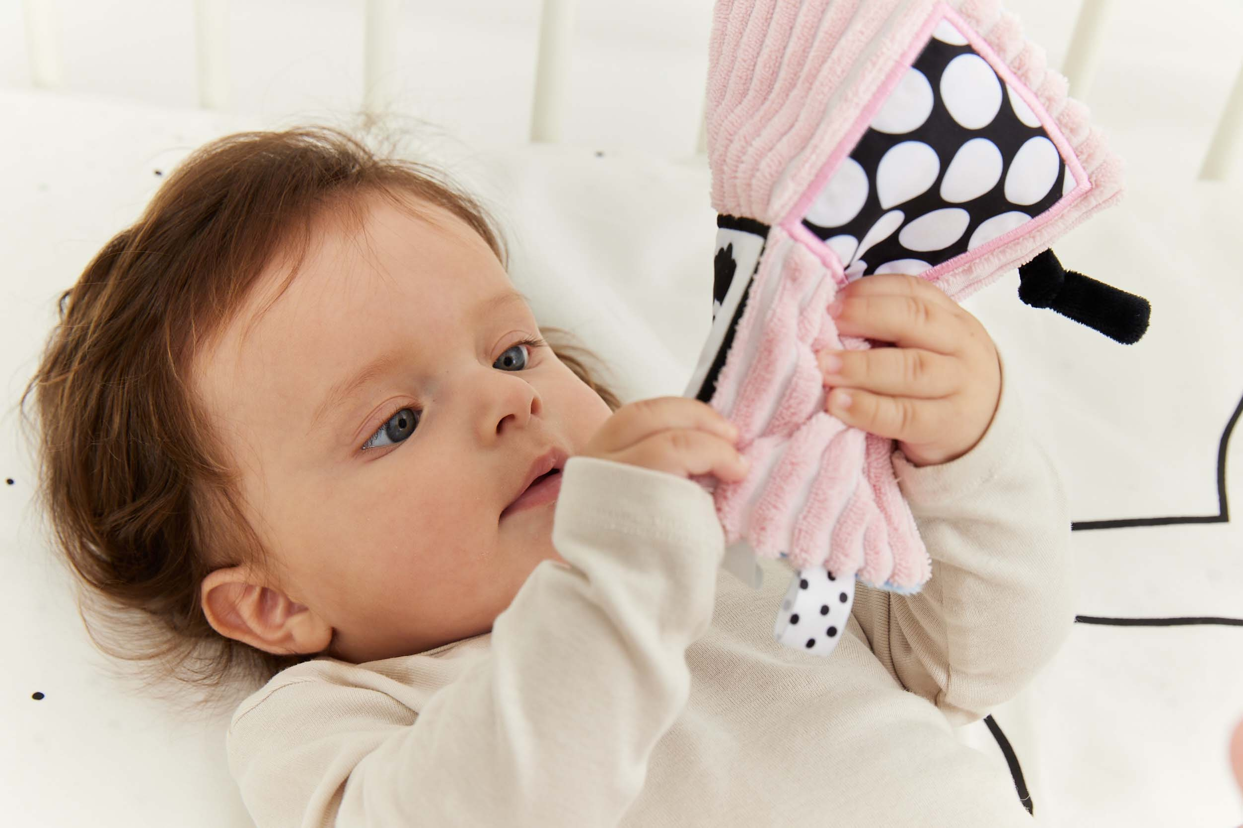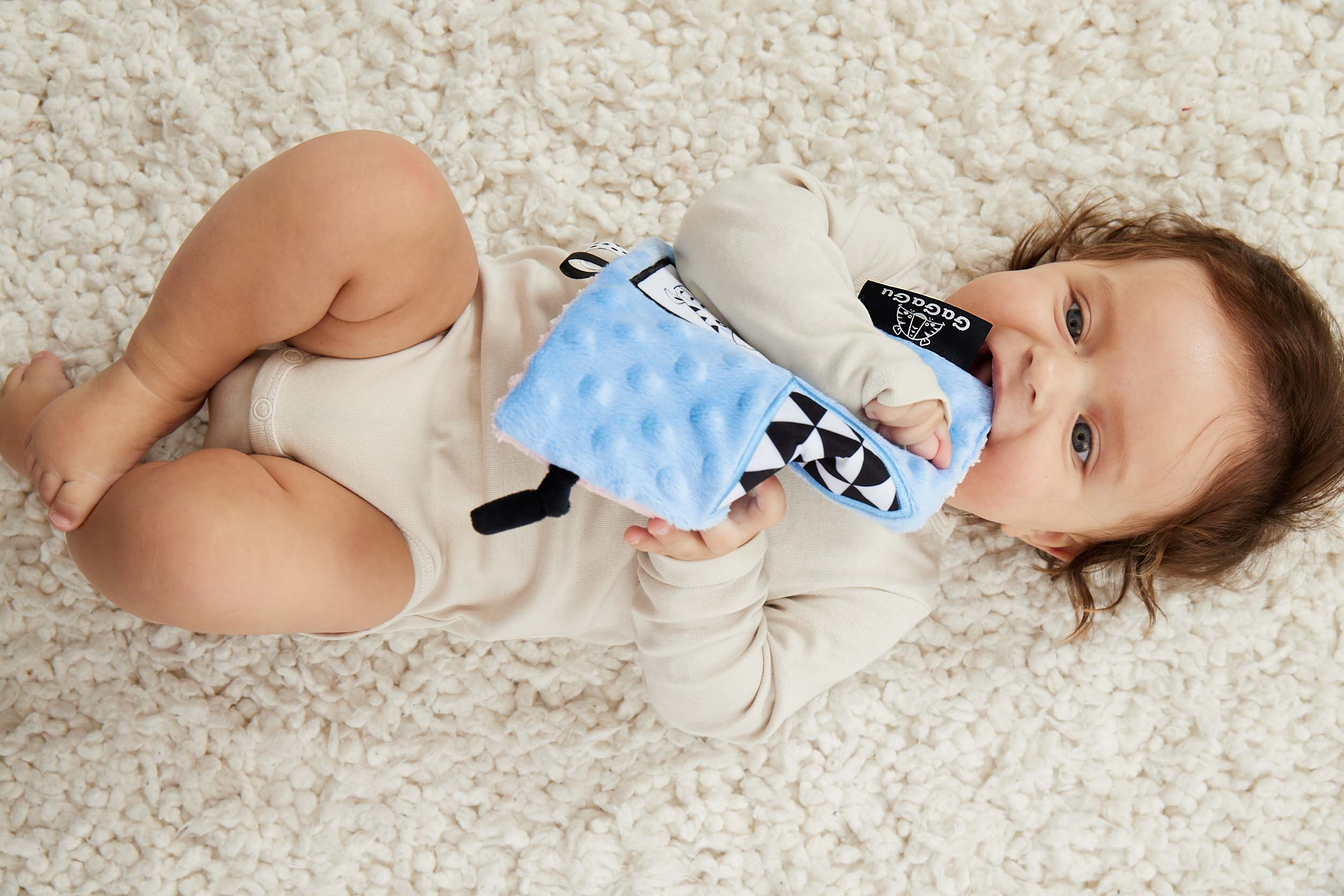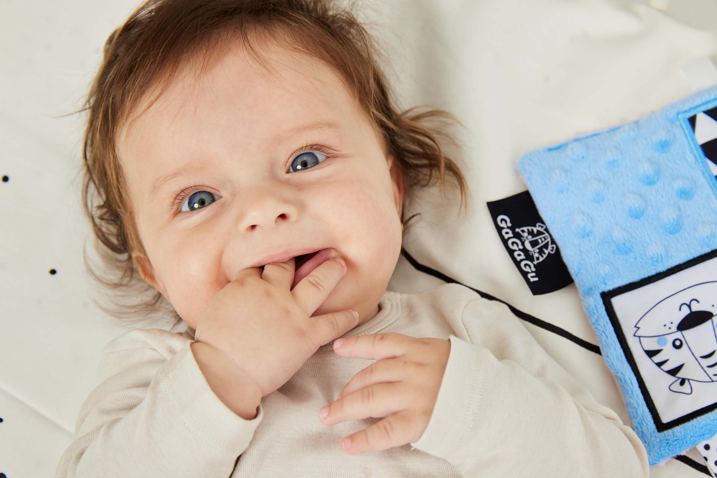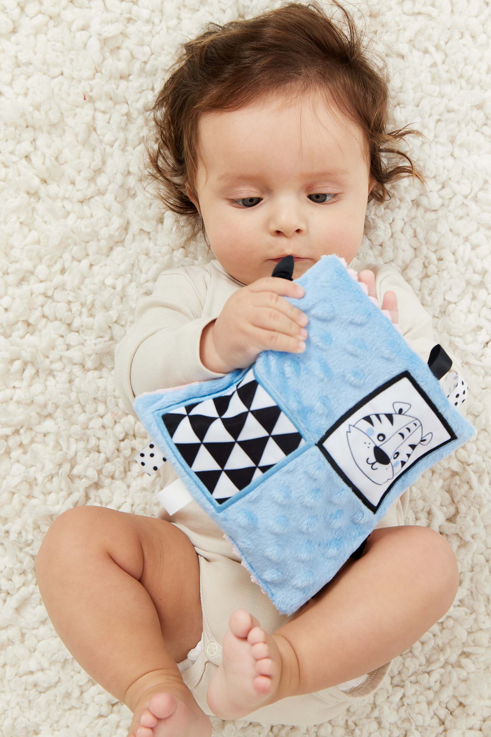 Dečka má kontrastní barvy a vzory, což stimuluje zrak dítěte a šustivý materiál uvnitř hračky stimuluje jeho sluch. Dítě má možnost poznávat různé textury, díky kterým si rozvíjí hmat. Doplňkové stuhy, plyšová poutka, velký štítek - usnadňují dítěti uchopení hračky a podporují tzv. cvičení jemné motorické dovednosti (pohyby prstů a rukou). Dečka je oboustranná - na každé straně má jinou grafiku: na jedné straně ovce - na druhé tygr. Hračka je velmi lehká a šikovná, snadno skladná, ideální na procházku nebo výlet. Informace o prodktu (v bodech):• kontrastní barvy a vzory – stimulují zrak dítěte• různé textury materiálu – stimulace hmatu• šustivý materiál – rozvoj sluchu• různé prvky (stuhy, poutka, štítek) - podpora jemné motoriky (pohyby prstů a rukou)• lehká a šikovná hračka – na procházku, domů nebo na cesty• žádné plastové díly• lze kombinovat s dalšími produkty GaGaGu.