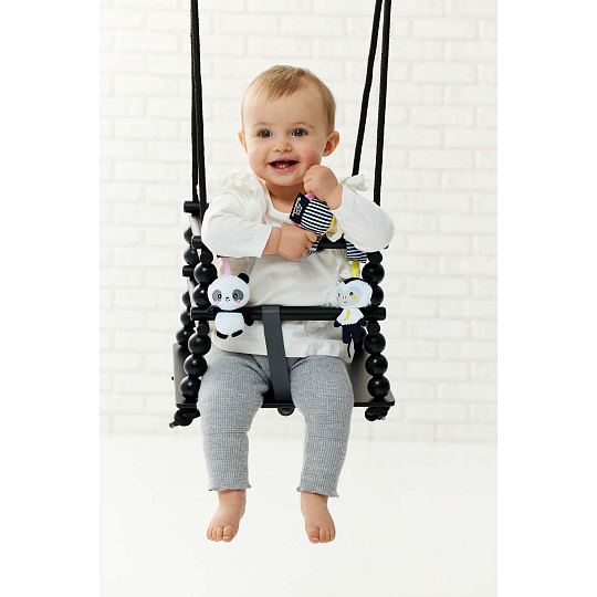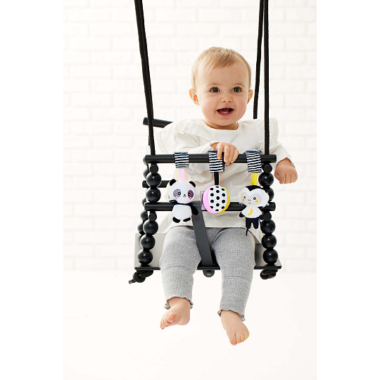 Závěsná plyšová hračka GaGaGu má kontrastní barvy a vzory, které stimulují zrak dítěte. Plyšové prvky - opice, panda a míč - a stuhy vybízejí děti, aby je uchopily a podpořily tzv. jemnou motoriku (pohyby prstů a rukou) a učení motorické koordinace. Pohodlný způsob zapínání na suchý zip (příjemný na dotek a snadné zapínání) vám umožní přívěsek připevnit kamkoli, například na kočárek, na postýlku, na houpačku nebo autosedačku. Hračka je velmi lehká a šikovná, snadno skladná, ideální na procházku nebo výlet. Je určen pro děti ve věku 0m + a je jedním z 12 produktů dostupných pod značkou GaGaGu. Kromě přívěsků i chrastítka, spirála, kniha, smyslové kostky a smyslová podložka. Všechny hračky GaGaGu lze vzájemně kombinovat.Informace o produktu (v bodech):• kontrastní barvy a vzory – stimulují zrak dítěte• plyšové prvky - opice, panda a míč