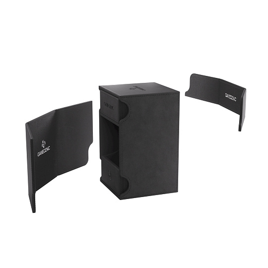 Praktická krabička na karty a herní doplňky. Krabička pojme až 100 obalených karet v dvojobalech a ještě má extra přihrádku na kostky, žetony a drobné herní doplňky.