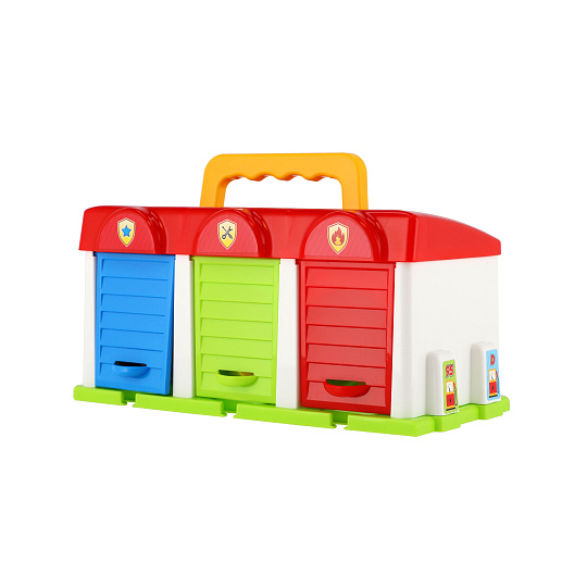 Potřebuješ mít autíčka stále při ruce a v bezpečí? Tato garáž s autíčky a praktickým držátkem je ta pravá! Pod třemi dveřmi se schovávají tři auta - hasiči, osobák a dodávka. V garáži najdete část pro snadnější vjezd a výjezd aut do své kóje. S těmito plastovými autíčky s garáží si užiješ mnoho zábavy! Rozměr krabice: 27 x 14 x 15 cm Vhodné pro děti od 3 let
