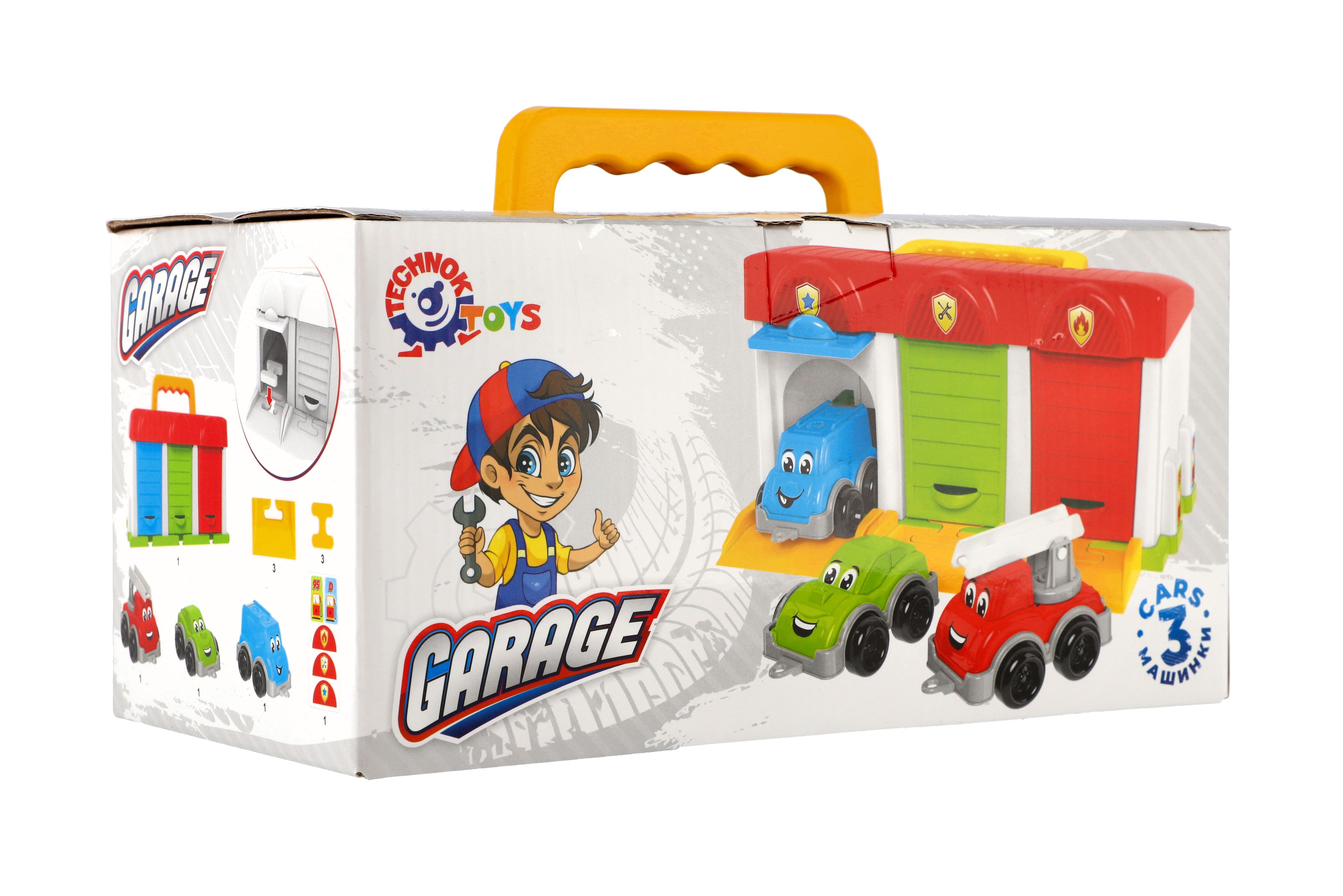 Garáž s autíčky 3ks + doplňky plast v krabici 27x14x15cm