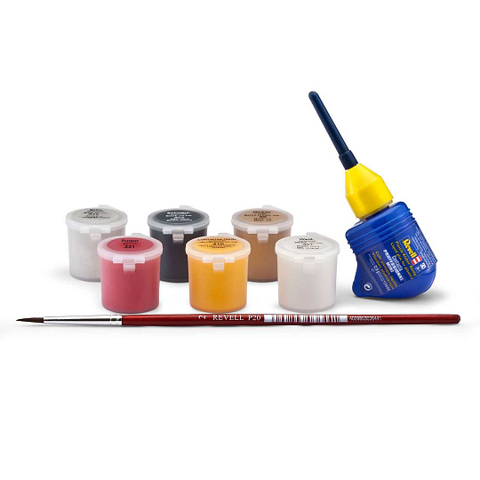 Návod na použití: Vodou ředitelná akrylová barva. Před použitím barvu dobře promíchejte. Nanášejte štětcem, nebo stříkáním na suchý, čistý povrch. Nehořlavá báze, rychle zasychá – nebarvitelné po 1 hodině, úplně uschne za 2–3 hodiny, podle tloušťky vrstvy. V případě potřeby zřeďte vodou. Použitím nevhodného ředidla se může barva zničit! Čistí se ředidlem Revell Aqua Color Clean. Na stříkání se doporučuje ředění maximálně 20 - 25 %. Štětec a pomůcky ihned po použití vypláchněte vodou. Nádobku po použití pevně uzavřete. Po otevření spotřebujte co nejdříve, barva přístupem vzduchu zasychá. Chraňte před mrazem. Obsahuje Směs látek 5-chlor-2methylisothiazol-3(2H)on a 2-methylizothiazol3(2H)-on s chloridem hořečnatým a dusičnanem hořečnatým. Může vyvolat alergickou reakci.
