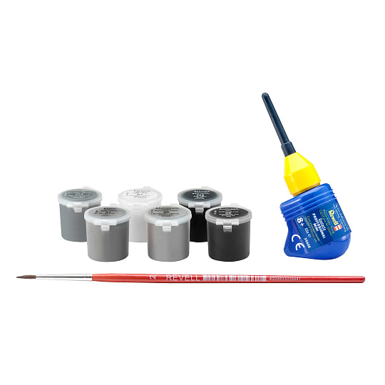 Návod na použití: Vodou ředitelná akrylová barva. Před použitím barvu dobře promíchejte. Nanášejte štětcem, nebo stříkáním na suchý, čistý povrch. Nehořlavá báze, rychle zasychá – nebarvitelné po 1 hodině, úplně uschne za 2–3 hodiny, podle tloušťky vrstvy. V případě potřeby zřeďte vodou. Použitím nevhodného ředidla se může barva zničit! Čistí se ředidlem Revell Aqua Color Clean. Na stříkání se doporučuje ředění maximálně 20 - 25 %. Štětec a pomůcky ihned po použití vypláchněte vodou. Nádobku po použití pevně uzavřete. Po otevření spotřebujte co nejdříve, barva přístupem vzduchu zasychá. Chraňte před mrazem. Obsahuje Směs látek 5-chlor-2methylisothiazol-3(2H)on a 2-methylizothiazol3(2H)-on s chloridem hořečnatým a dusičnanem hořečnatým. Může vyvolat alergickou reakci.