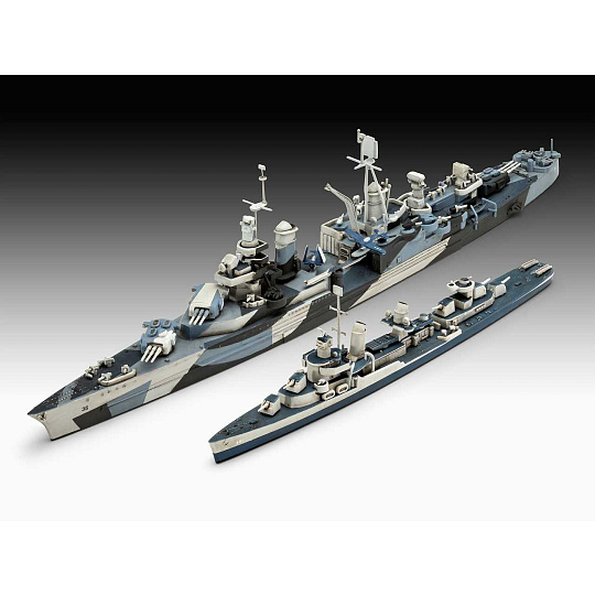 Modely lodí ke slepení. Velikost: 1:700; 16,4 + 26,2 cm. Balení obsahuje: 209 dílků ke slepení, lepidlo, štětec a barvičky.