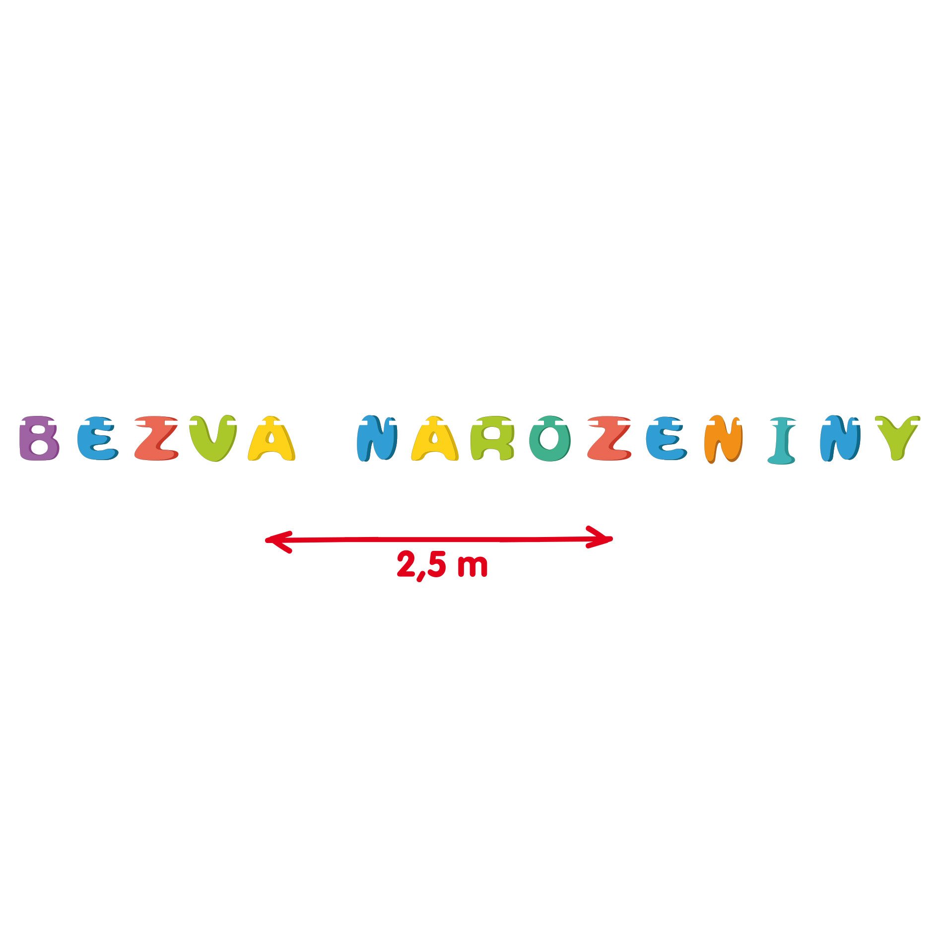 Super tip na oslavu - girlanda Bezva narozeniny v barevném provedení ve velikosti 10 x 9 cm! Stačí roztáhnout a pověsit. S touto barevnou girlandou bude tvoje výzdoba na párty nepřehlédnutelná. Délka cca 2,5 m.