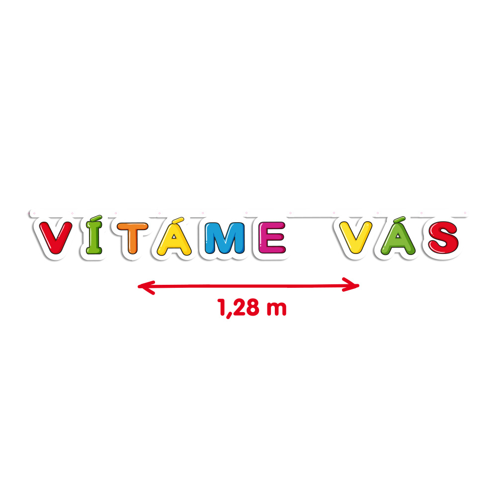 Super tip na oslavu - girlanda s nápisem VÍTÁME VÁS v barevném provedení! Stačí roztáhnout a pověsit. S touto barevnou girlandou bude tvoje výzdoba dokonalá! Délka cca 1,28 m.