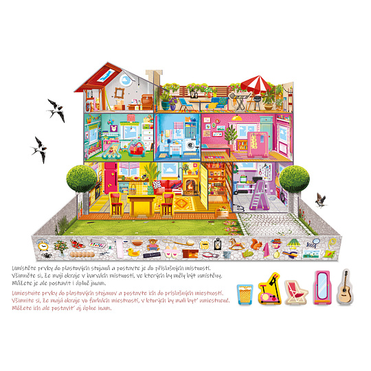 - Slovní zásobu – děti se učí názvy místností a předmětů v domácnosti.