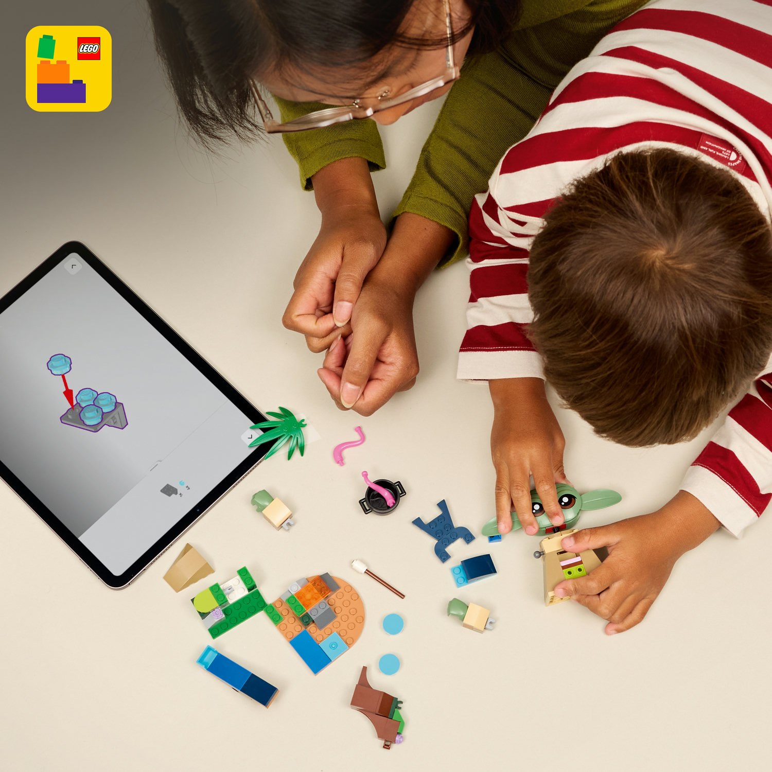 Pro ještě více zábavy si stáhněte aplikaci LEGO Builder s návody na stavění. Aplikace nabízí intuitivní nástroje přibližování a otáčení, které dětem umožní vizualizovat si modely, zatímco na nich pracují. S malou pomocí staršího sourozence nebo dospělého se stavění stane ještě zábavnější a interaktivnější.