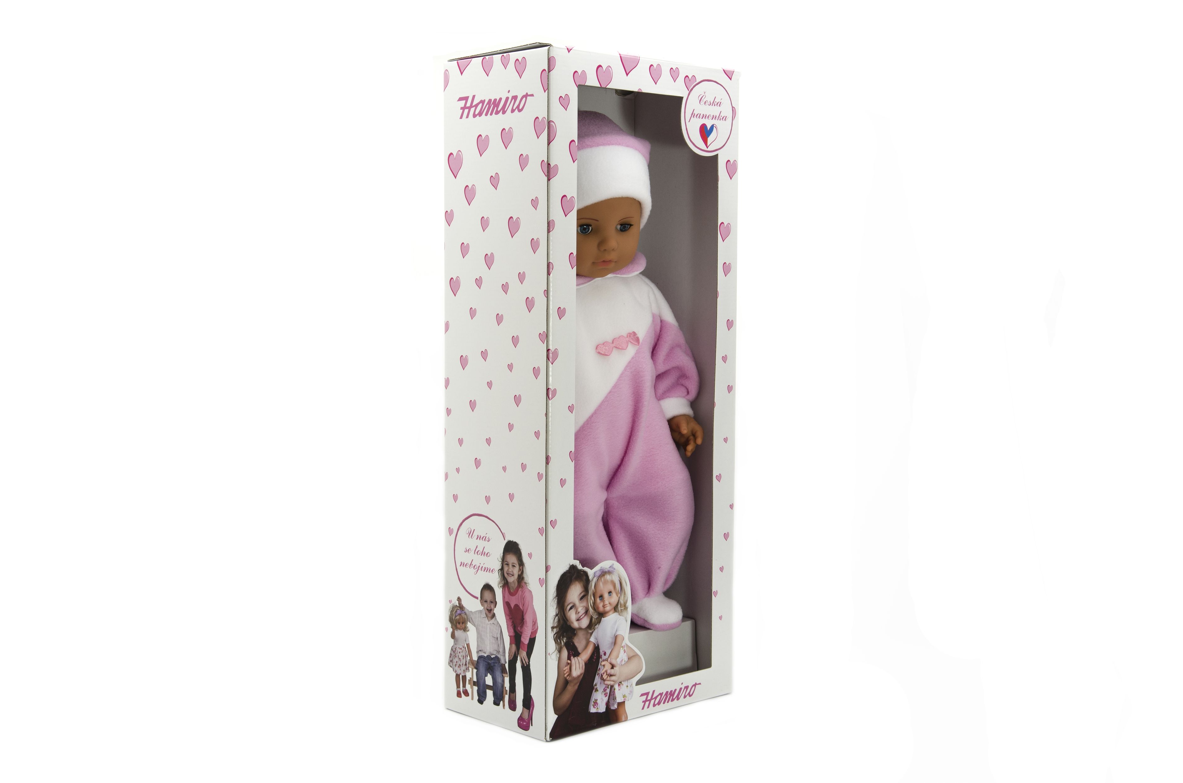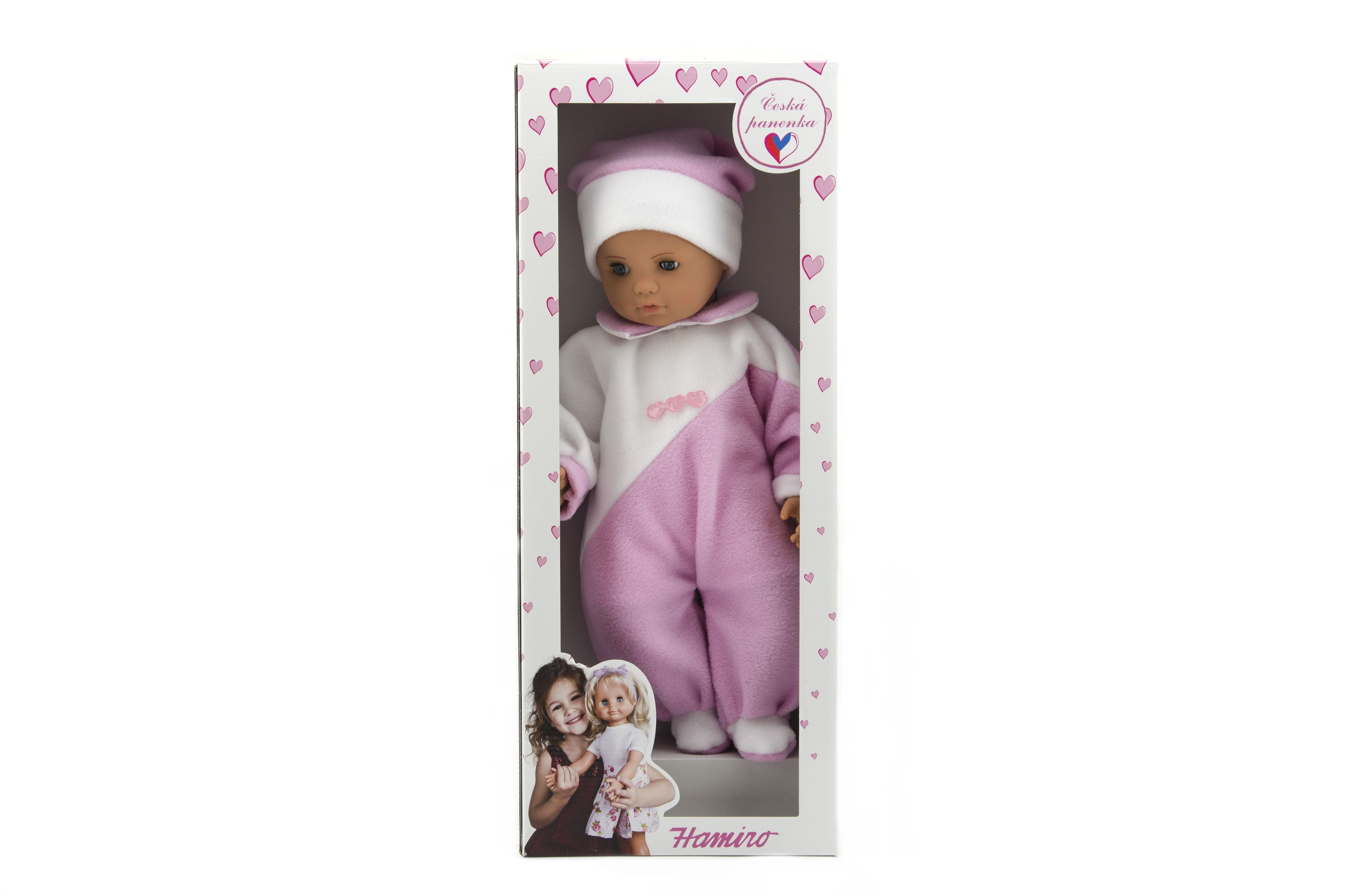 Hamiro Panenka/Miminko 50cm, látkové tělo overal růžovobílý v krabici 24x60x15cm