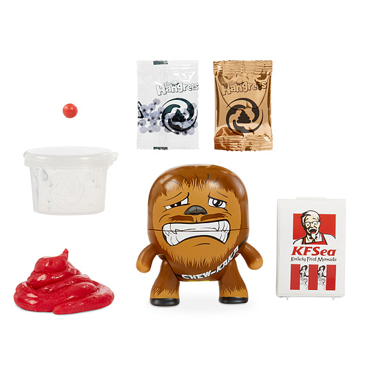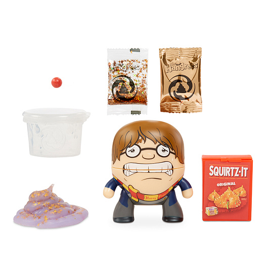 Nakrm Hladovce a pořádně s ním zatřes, vykadí sliz. Balení obsahuje mini toaletu pro uskladnění slizu.