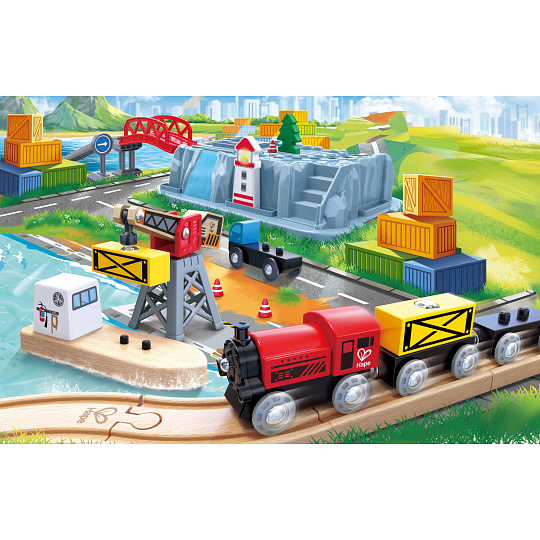 Hape Vláčkodráha set v boxu - Přístaviště