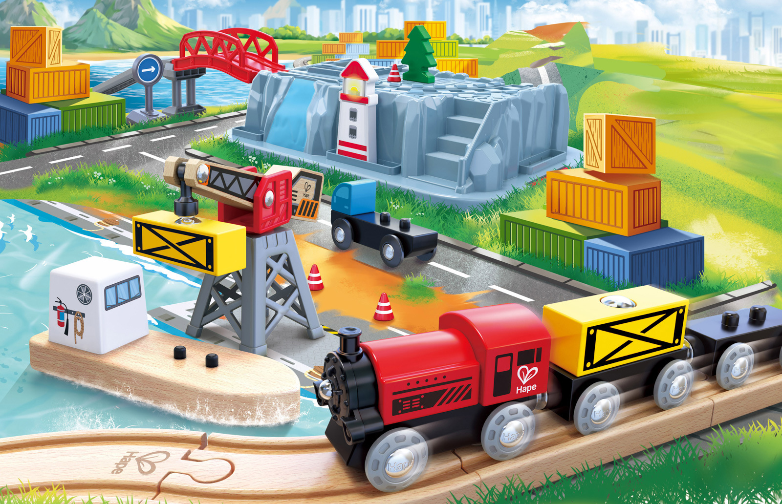 Hape Vláčkodráha set v boxu - Přístaviště