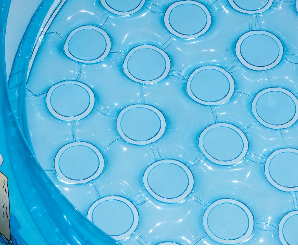 Nafukovací bazének s veselými obrázky na podlaze. Bazén má 2 barevné prstence v pastelových barvách. V nabídce ve dvou barevných provedeních ( růžová/modrá). Max. kapacita vody: 21 L. Rozměr: 61x15 cm. Věk: 2+(pod dohledem dospělé osoby).