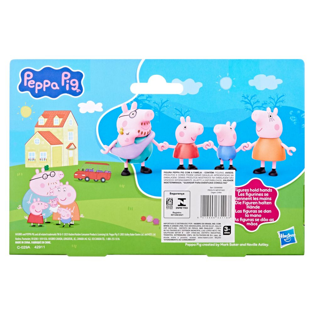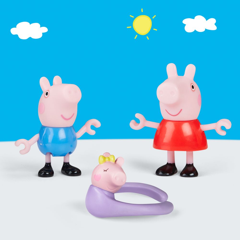 Sada figurek – Prasátko Peppa a jeho rodina. Děti si mohou přehrávat scény ze seriálu nebo vymýšlet nová vlastní dobrodružství s figurkami. Tato sada figurek je úžasnou hračkou pro děti, které milují tento seriál. Rodinka prasátek se rozrostla o jednoho člena a je nyní pětičlenná. Tato sada figurek Peppa Pig obsahuje: figurku tatínka, figurku maminky, figurku George, figurku Peppy a malou figurku Evie v nosítku. Děti mohou nasadit nosítko s Evie na maminku nebo tatínka prasátek. Figurky, které lze polohovat, se dokonce mohou držet za ruce pro sladké rodinné chvíle. Rozměry balení: 18,1 x 22,9 x 5,1 cm. Věk: 3+