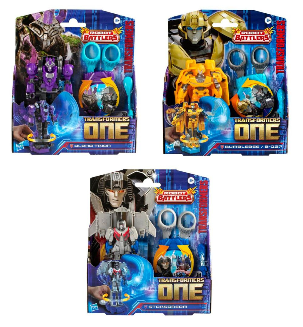 Akční bojové figurky cca 10 cm založené na základě ikonických filmových postav z nejnovějšího filmu Transformers. Balení obsahuje figurku, zbraň a základnu. Bojové figurky se vyznačují úderem a rotací. Cena za 1 kus.