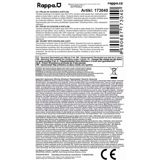 Praktická helma s ochranným krytem pro malé policisty! Tento kvalitní kousek je vyroben z plastu a zdoben odznakem na přední straně. Navíc při stisknutí tlačítka helma bliká a hraje. Velikost helmy si můžeš nastavit podle vlastní hlavy! Tak zažij opravdickou záchrannou akci. Součástí balení jsou 3 ks baterií typu AG13. UPOZORNĚNÍ: Tato hračka nezajišťuje ochranu.