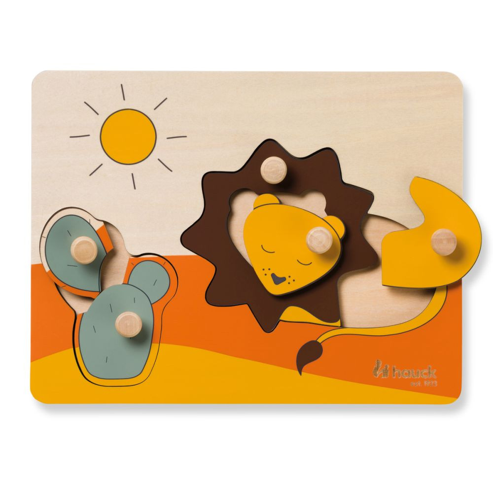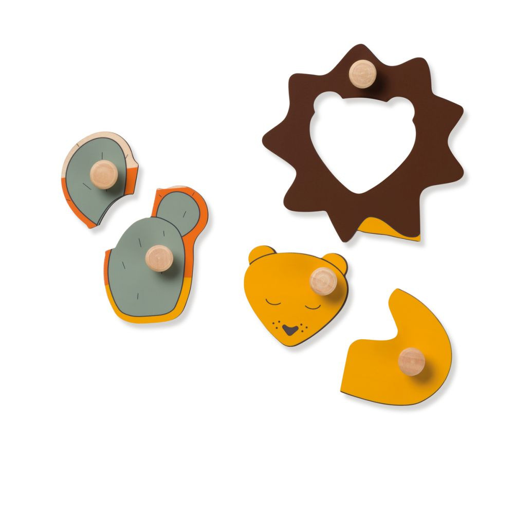 Dřevěná skládačka podporuje jemnou motoriku a hravé učení koordinace ruka-oko. S láskou navržené puzzle se skládá z dřevěné desky a s tvary na dílky skládačky v podobě zvířátek. Díky praktickým knoflíkům vaše dítě snadno uchopí každý kousek. Uchopením a přilepením dílků na místo vaše dítě vytvoří zvířátko a zároveň trénuje tvary, paměť, j