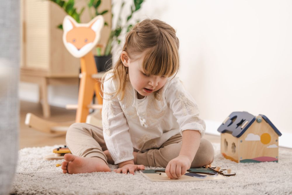 Dřevěná skládačka podporuje jemnou motoriku a hravé učení koordinace ruka-oko. S láskou navržené puzzle se skládá z dřevěné desky a s tvary na dílky skládačky v podobě zvířátek. Díky praktickým knoflíkům vaše dítě snadno uchopí každý kousek. Uchopením a přilepením dílků na místo vaše dítě vytvoří zvířátko a zároveň trénuje tvary, paměť, jemnou motoriku, koordinaci oko-ruka a koncentraci. Udržitelná hračka je vyrobená ze dřeva s certifikací FSC®. Vhodné pro děti od 1 roka.